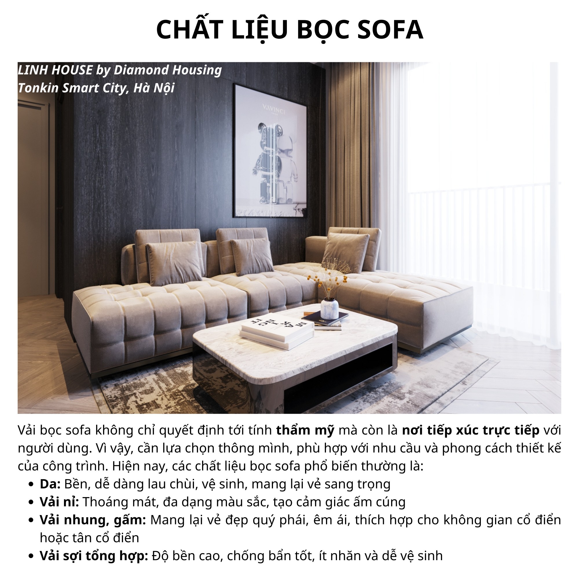 Để sở hữu một bộ sofa hoàn hảo, gia chủ cũng cần có sự kết hợp hài hòa giữa khung xương chắc chắn, lớp đệm êm ái, kiểu dáng phù hợp và chất liệu bọc tinh tế. Hy vọng với những chia sẻ chi tiết trên từ Diamond Housing, bạn đã có đủ thông tin để tự tin chọn mua bộ sofa ưng ý nhất cho tổ ấm của mình.