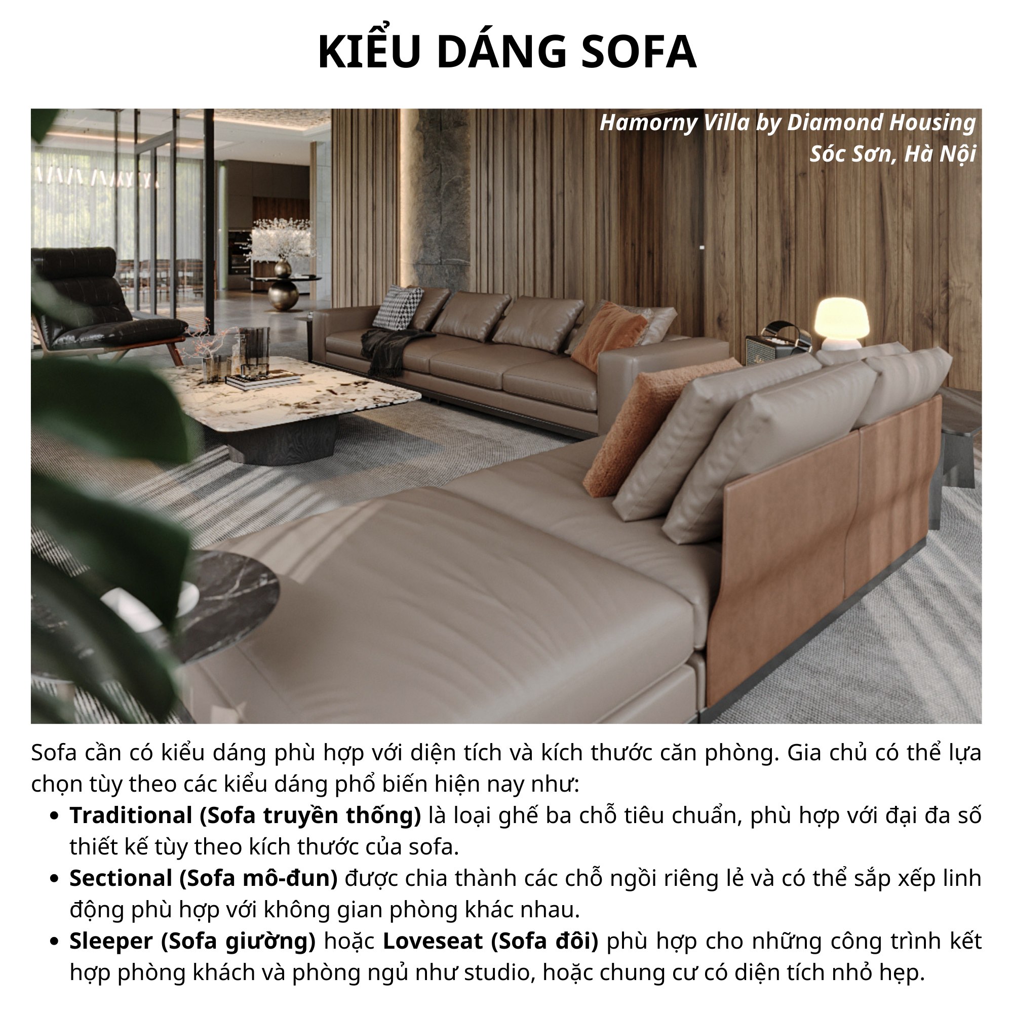 Lựa chọn kiểu dáng sofa không chỉ dựa vào sở thích mà còn phải căn cứ vào diện tích thực tế của căn phòng. Một bộ sofa quá lớn sẽ gây bí bách, trong khi sofa quá nhỏ lại khiến không gian trở nên lạc lõng.
