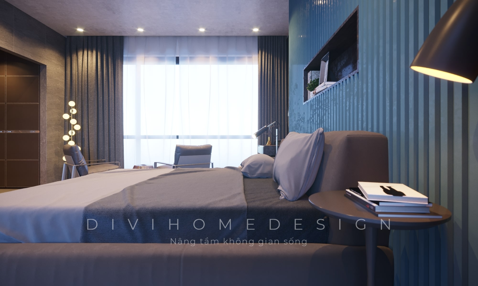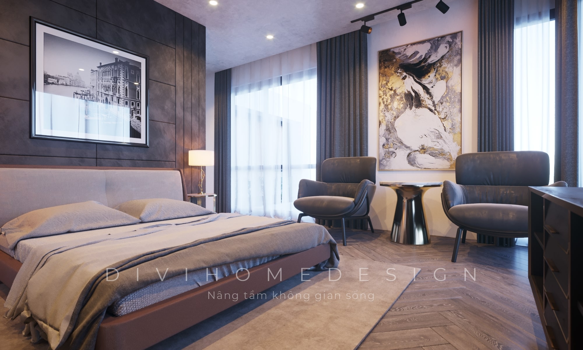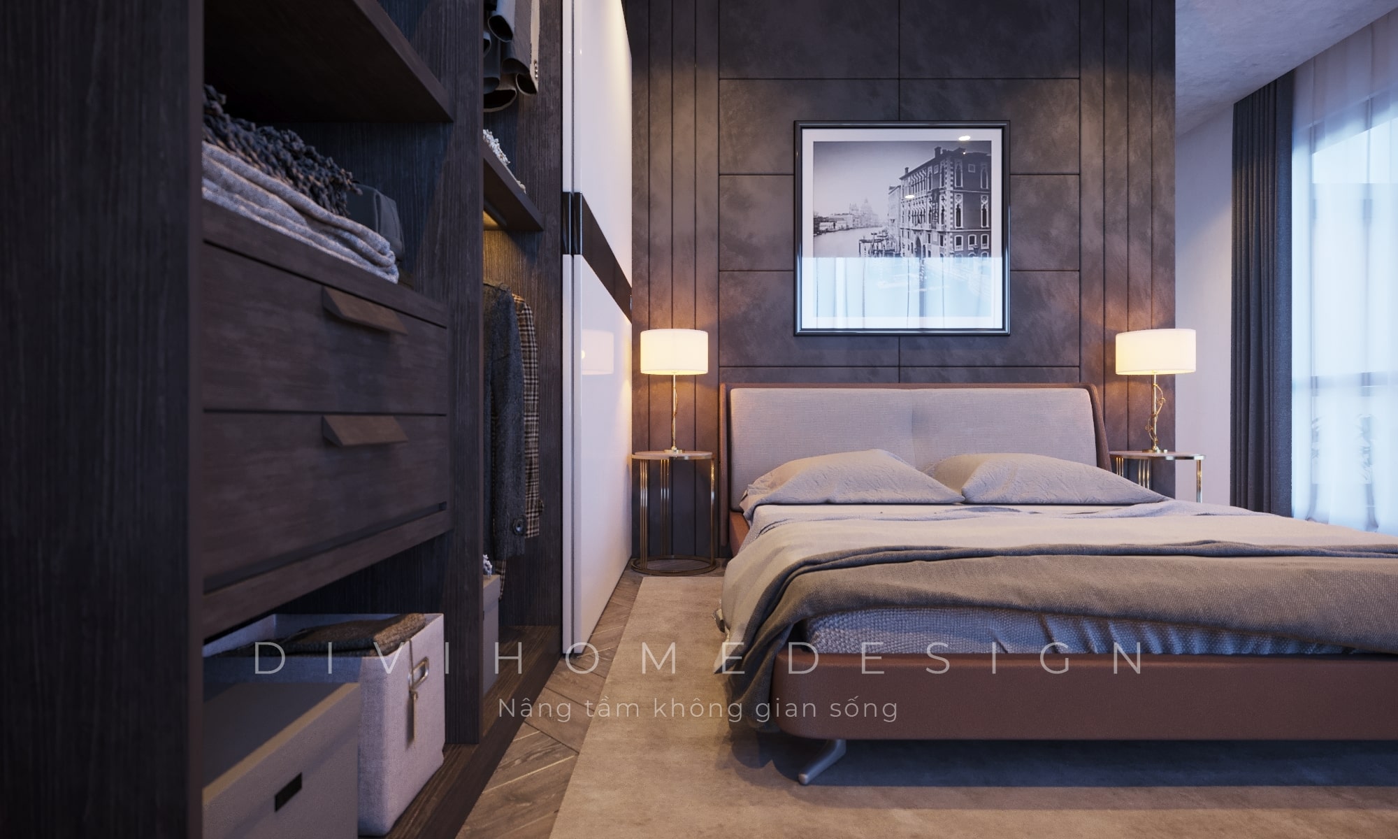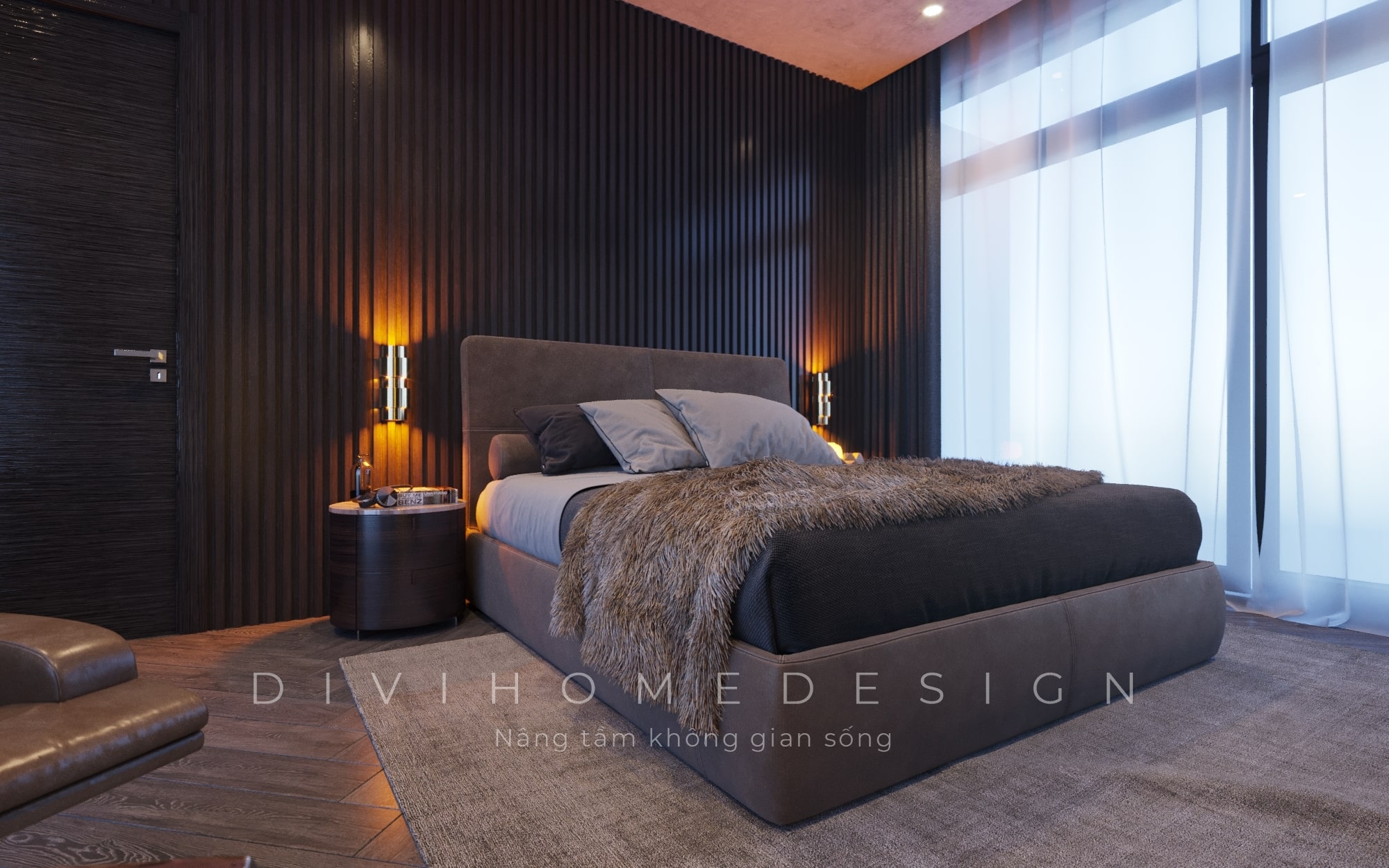 Bố trí nội thất phòng ngủ master tông nâu trầm ấm