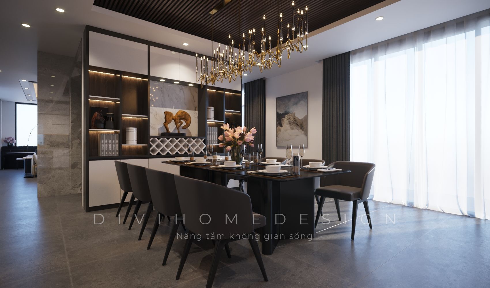 Thiết kế nội thất biệt thự theo phong cách hiện đại tại Hạ Long, Quảng Ninh. Với đặc trưng là biệt thự nghỉ dưỡng, ngoài các phòng chức năng chính, ngôi nhà còn có thêm không gian thư giãn khác như phòng massage, phòng xem phim và phòng thưởng rượu. Hãy cùng xem các KTS của Divihome đã đưa ra đáp án như thế nào với đề bài lần này nhé.