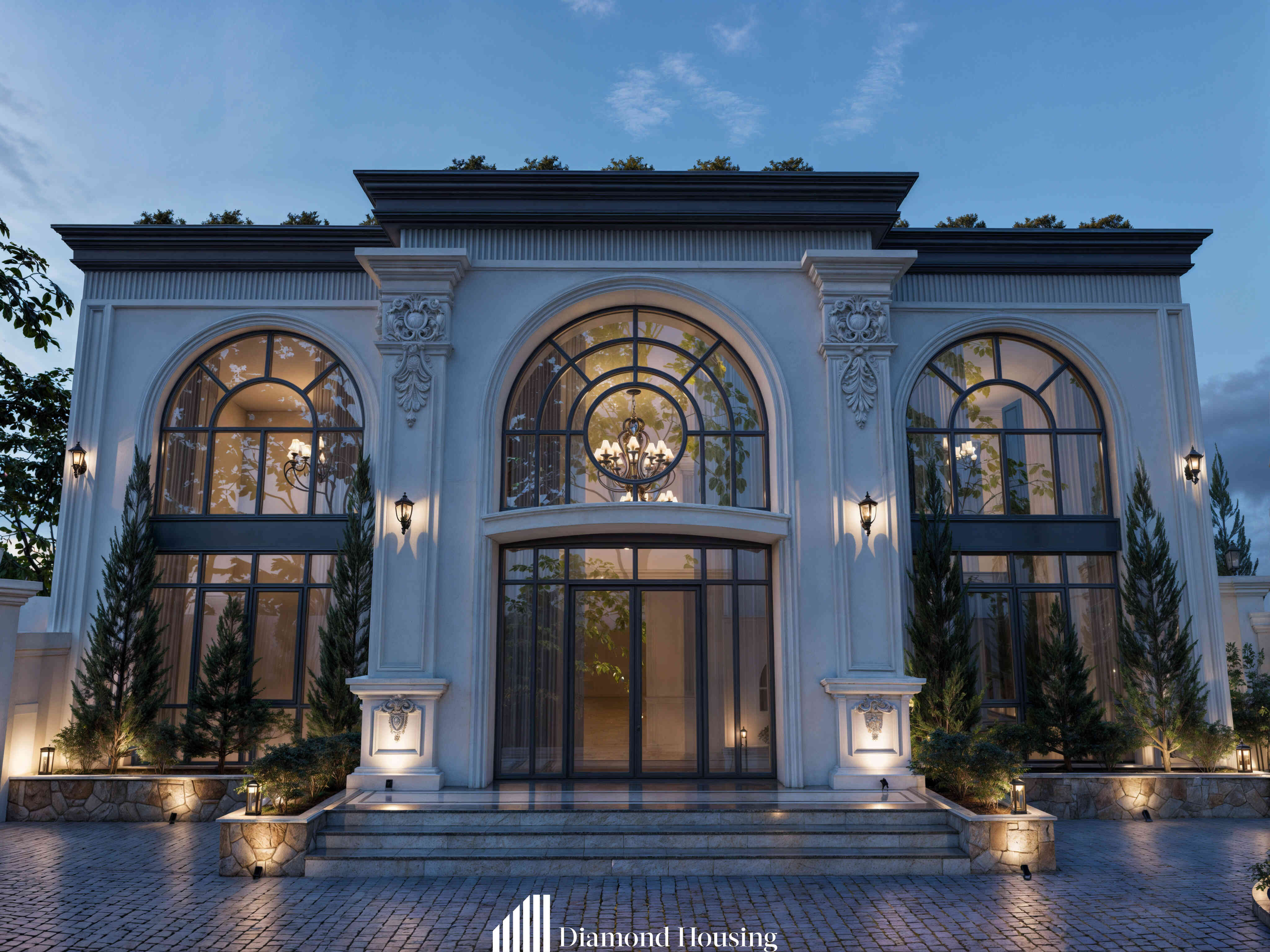 Phong cách tân cổ điển là phong cách thiết kế kiến trúc kết hợp giữa yếu tố cổ điển và hiện đại. Kiến trúc thường có các yếu tố như cột trụ, chi tiết hoa văn phức tạp, và các đường nét trang trí tinh xảo. Mặt tiền thường được trang trí bằng các cột đá, tường dày và các chi tiết phào chỉ cầu kỳ, mang lại vẻ đẹp sang trọng và đẳng cấp.