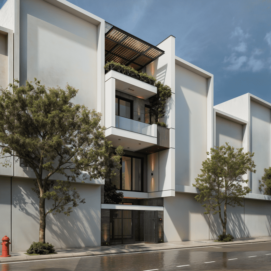 - Đây là phong cách thiết kế kiến trúc nhà phố rất phổ biến, phù hợp với các khu đô thị, nhà phố và khu vực có không gian hạn chế.