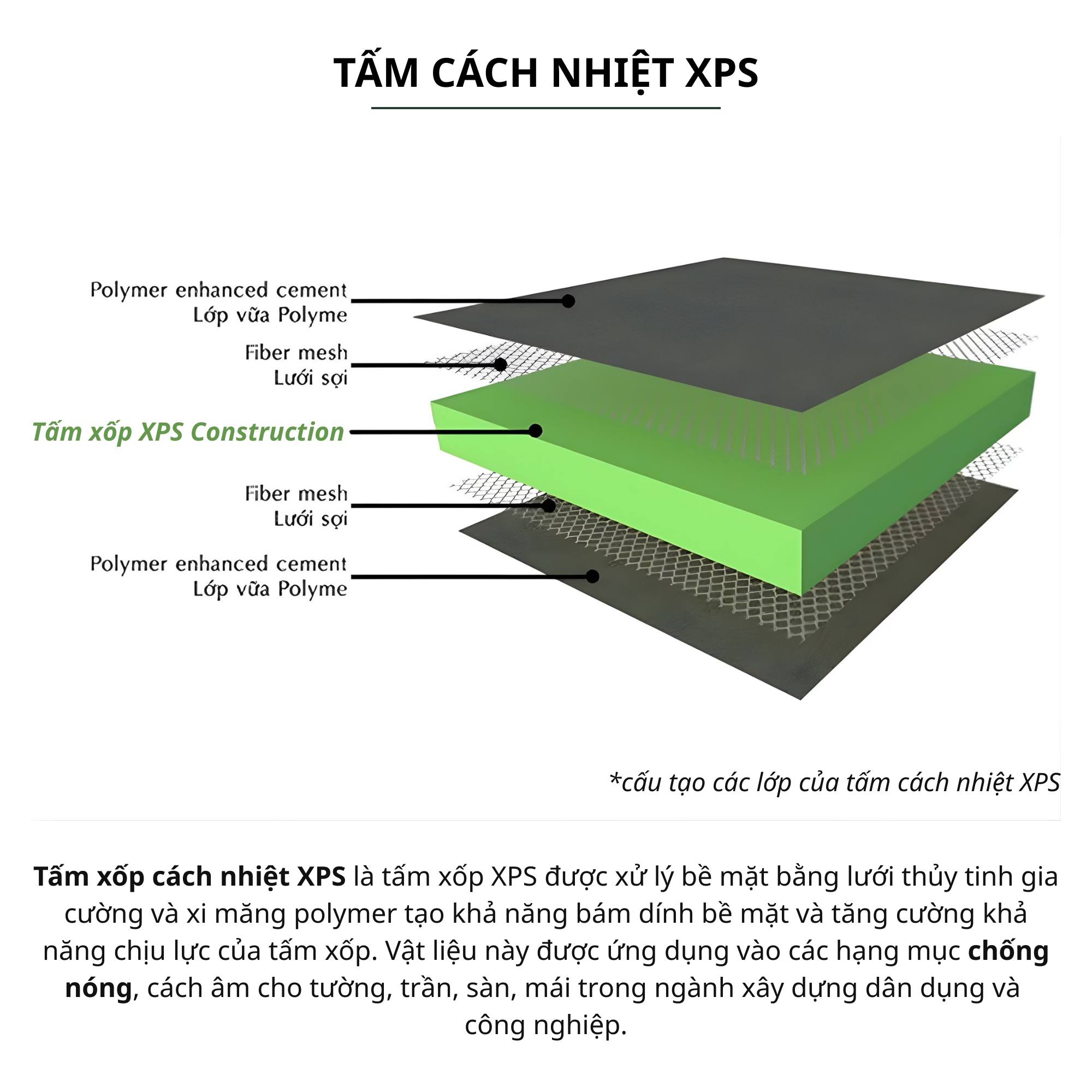 Cấu tạo đặc biệt: XPS được xử lý bề mặt bằng lưới thủy tinh gia cường và lớp xi măng polymer, tạo nên khả năng bám dính tuyệt vời và độ bền cơ học cao.