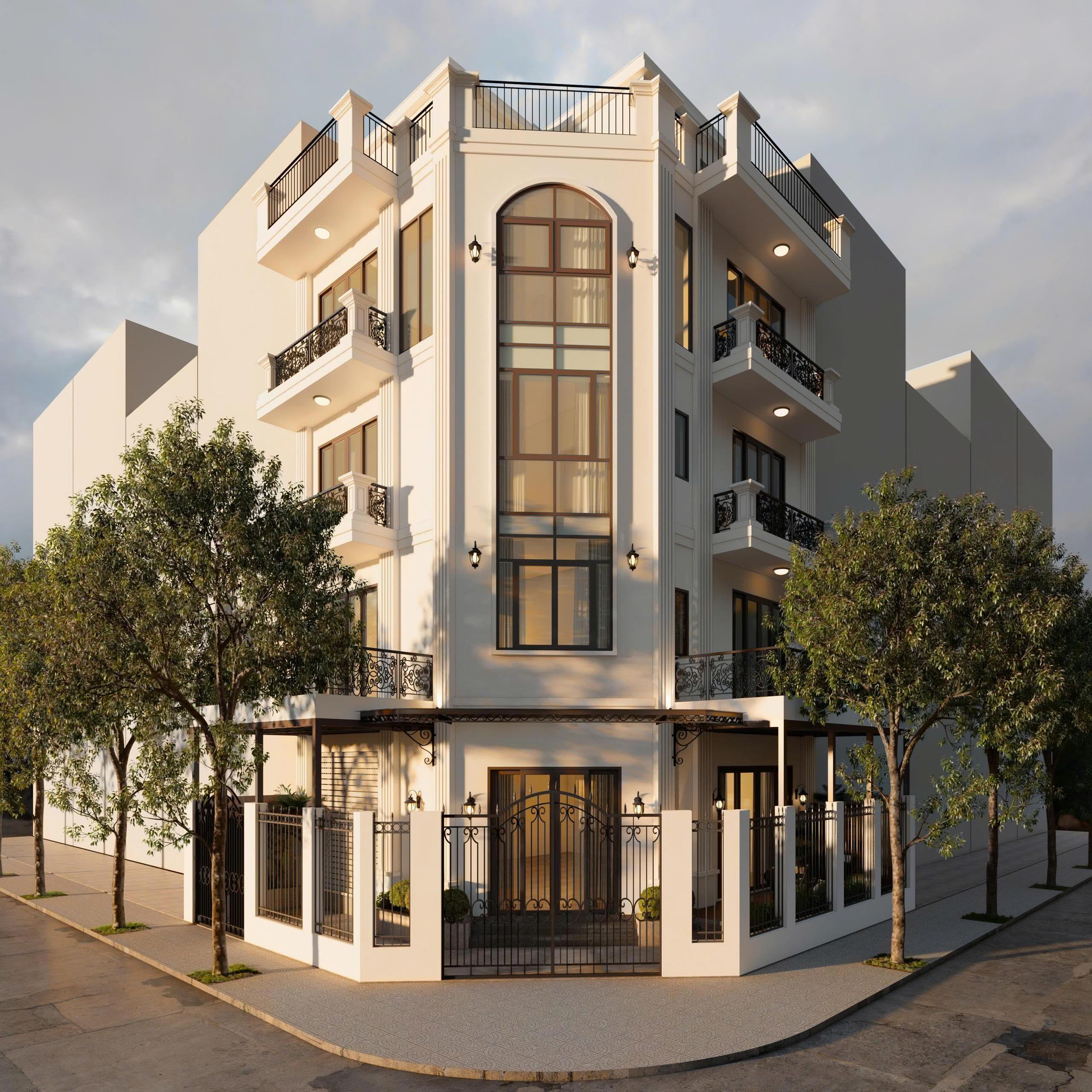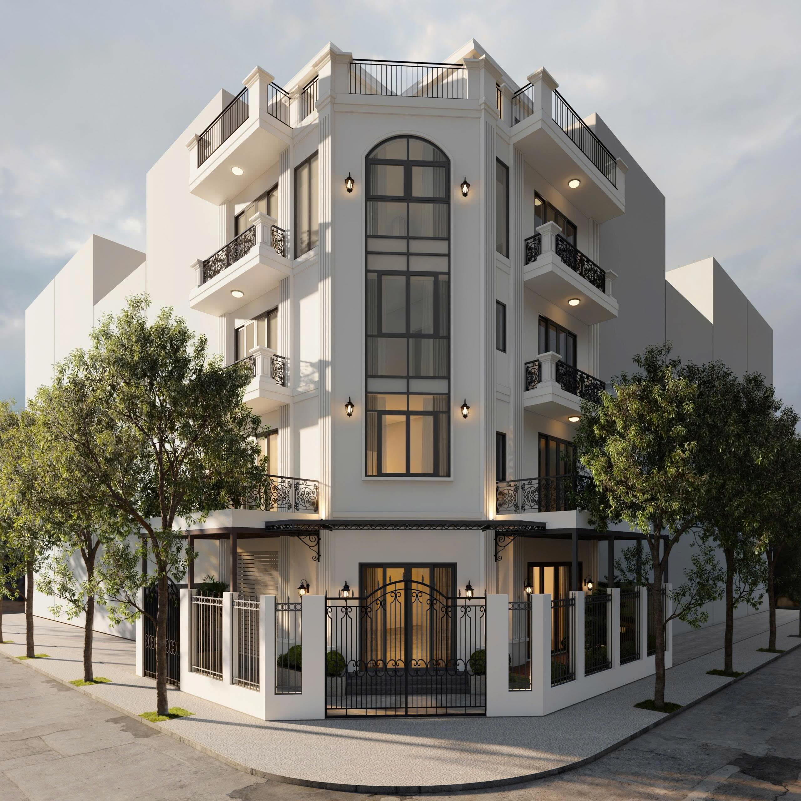 Mặt tiền đắt giá được tận dụng tối đa với hàng loạt thủ pháp kiến trúc nghệ thuật: mái vòm kính thông tầng, ban công nhỏ cổ điển xen kẽ trên gam màu trắng sáng, bên trong là các phòng chức năng thông minh, tiện nghi tuyệt đối.