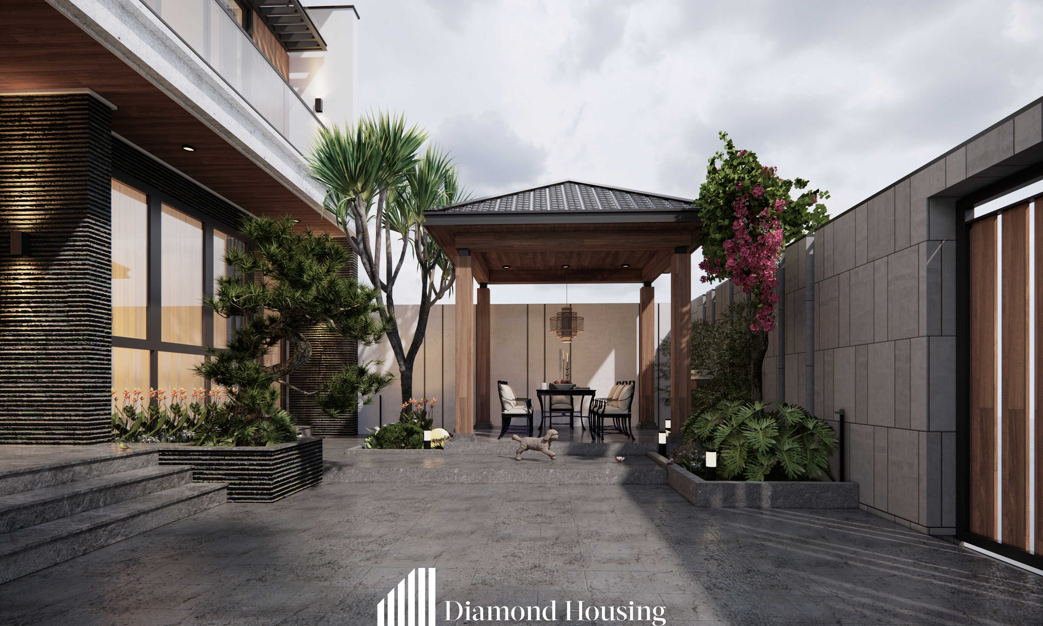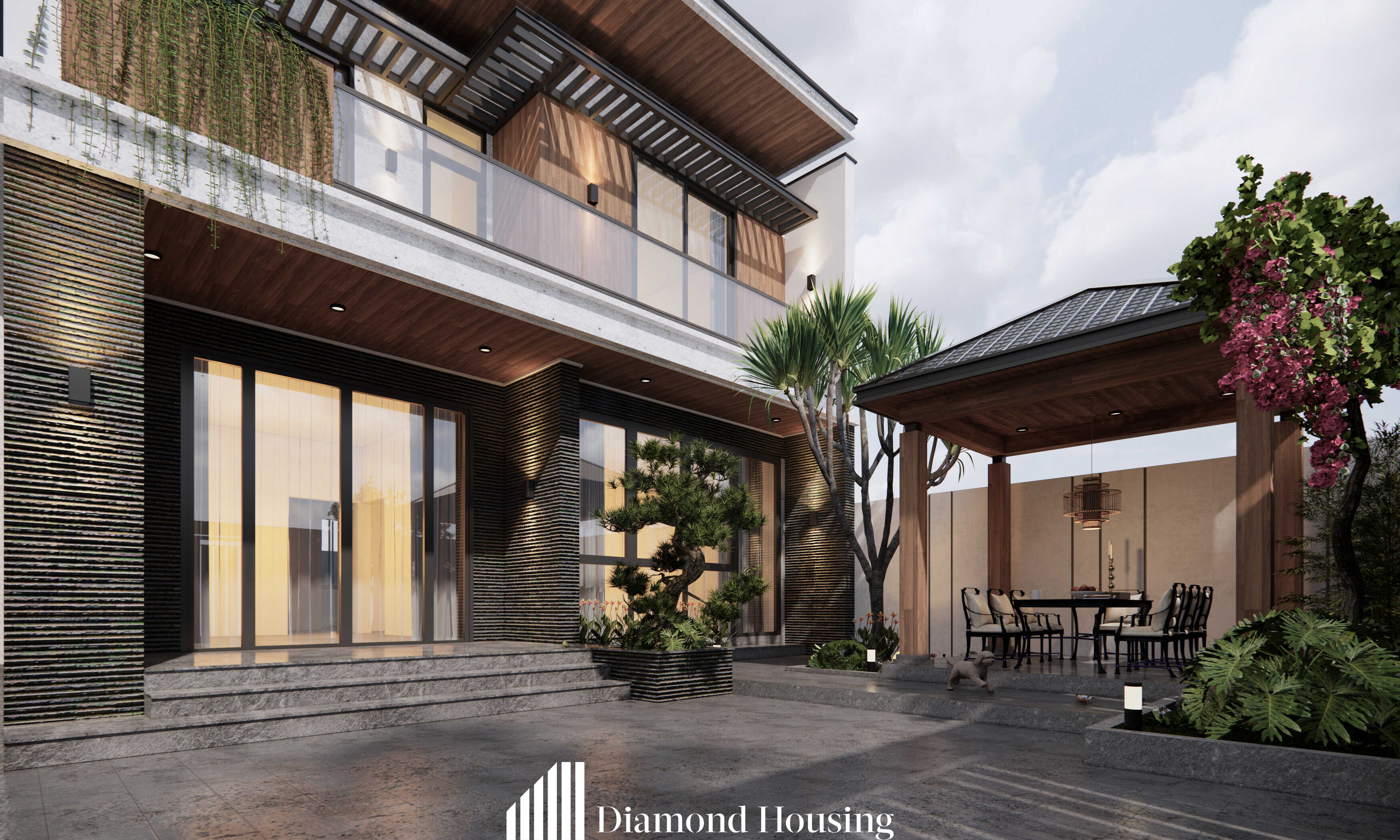 Toàn bộ cảnh quan biệt thự mái Nhật độc đáo được cải tạo lại từ khung công trình cũ.