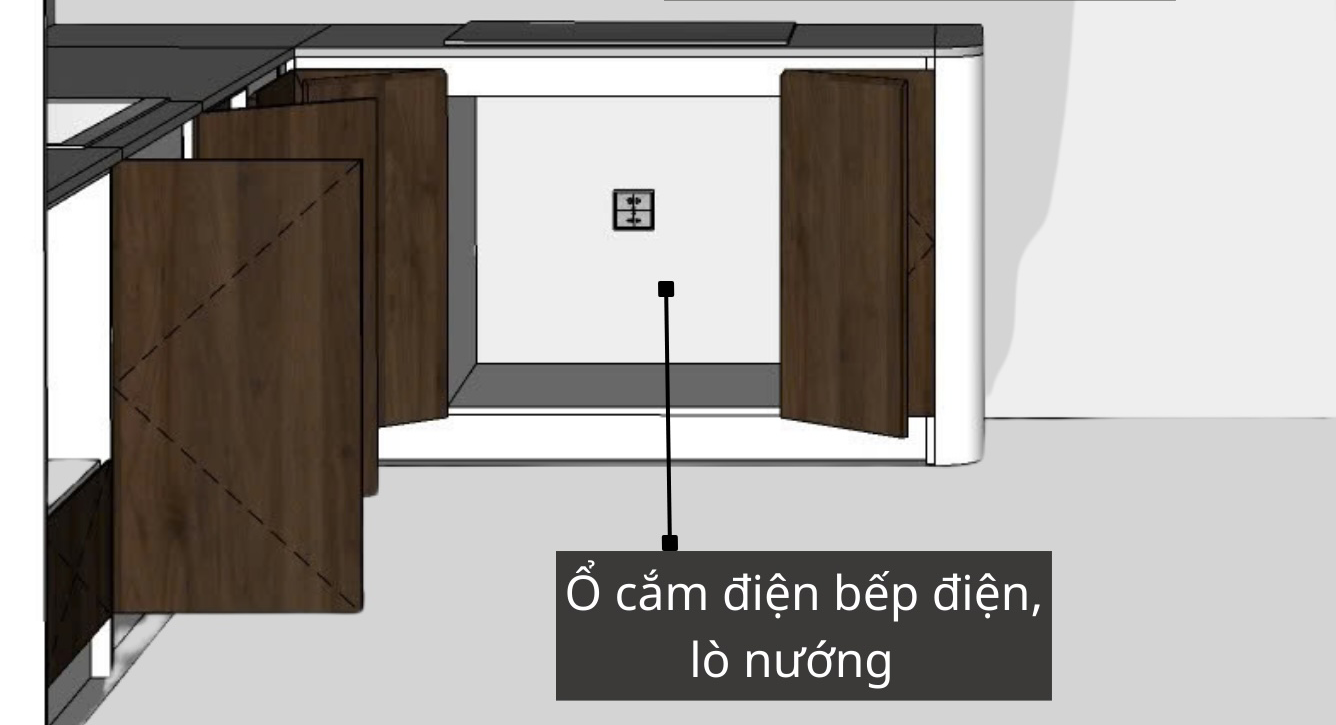 - Đối với bếp điện (Bếp từ/Bếp hồng ngoại): Hầu hết bếp từ hiện nay không dùng phích cắm thông thường mà kết nối trực tiếp qua Aptomat (CB) riêng. Vị trí CB nên đặt trong tủ bếp dưới, ngay dưới vị trí bếp để dễ dàng ngắt điện khi cần thiết. Dây dẫn tối thiểu phải đạt tiêu chuẩn 4.0mm2 đến 6.0mm2 tùy công suất bếp.