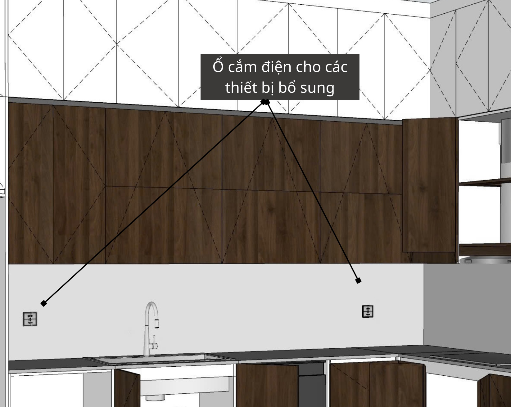 Khi thiết kế nội thất cho căn bếp, các vị trí đặt ổ điện là vô cùng quan trọng. Không chỉ cần hợp lý với sơ đồ điện của cả căn nhà, các vị trí này còn phải mang lại tiện nghi cho người dùng. Một hệ thống điện thiếu khoa học sẽ dẫn đến tình trạng dây nhợ chằng chịt, quá tải mạch hoặc tệ hơn là gây nguy hiểm trong quá trình sử dụng.