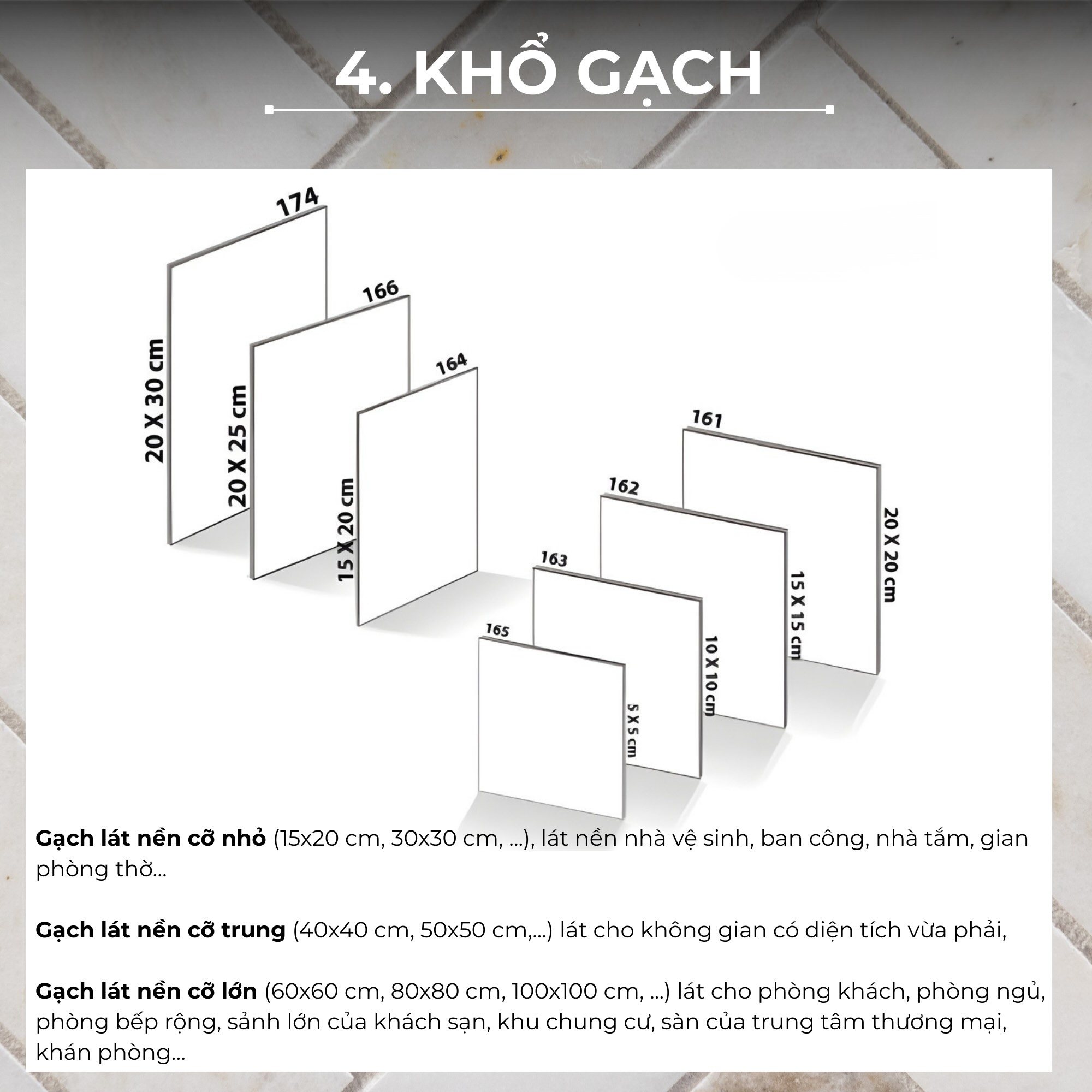 Việc lựa chọn khổ gạch (kích thước) phù hợp đóng vai trò quan trọng trong việc hoàn thiện thẩm mỹ và tối ưu hóa chi phí cho ngôi nhà: