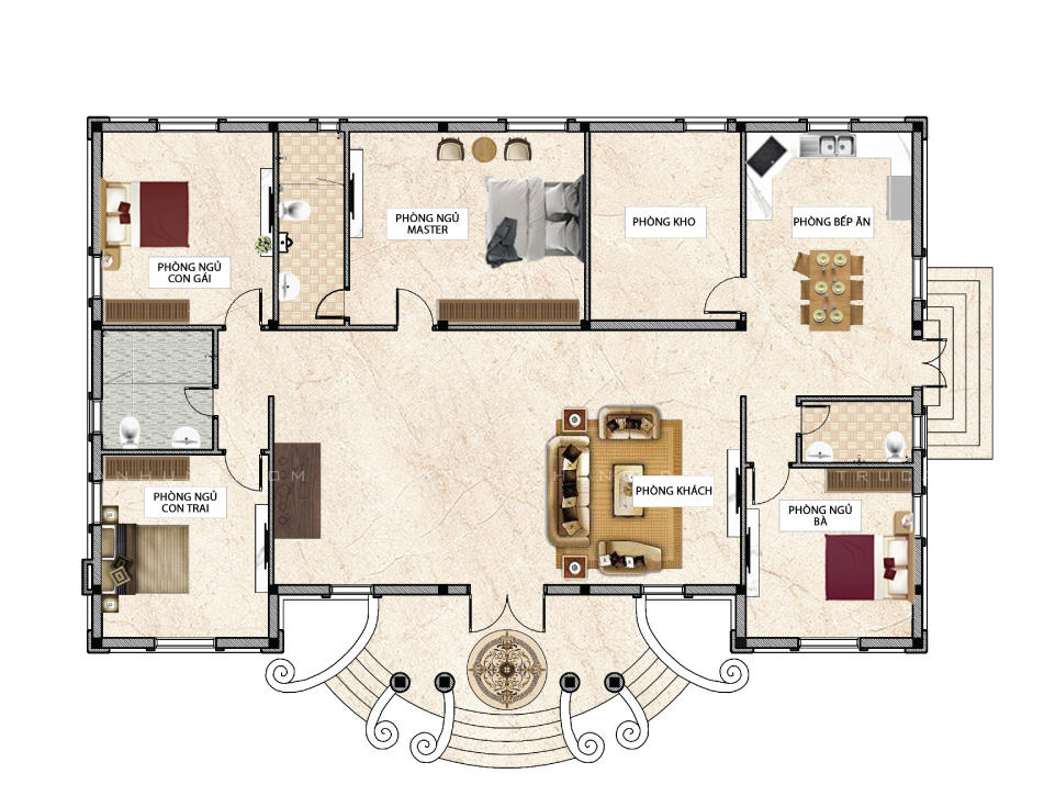 Mẫu nhà phố 1 tầng 5 phòng ngủ phong cách tân cổ điển