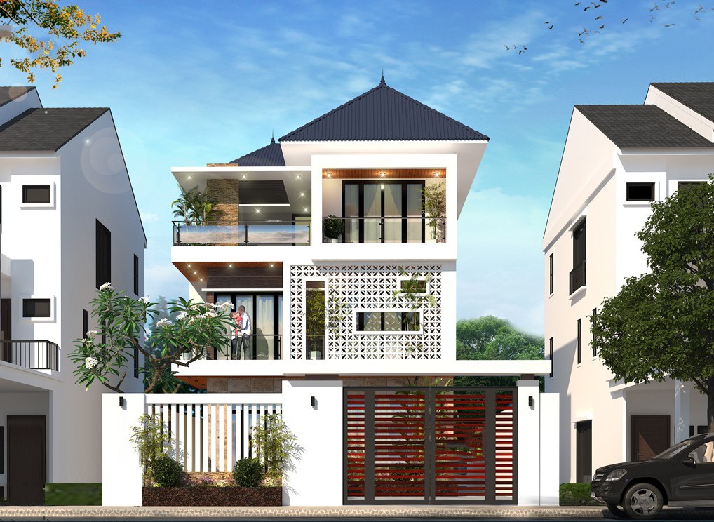Nhiều người nghĩ rằng phong cách mái nhật chỉ phù hợp với các mẫu nhà phố 5 phòng ngủ 1 hoặc 2 tầng. Tuy nhiên, với nhà phố 3 tầng, phong cách mái nhật lại có nét riêng độc đáo của nó. Phong cách này làm căn nhà trông như một biệt thự độc lập, đẳng cấp đồng thời thừa hưởng bộ công năng mà phong cách mái nhật truyền thống mang lại.