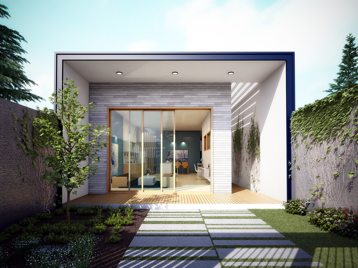 Mẫu nhà phố 1 tầng 5 phòng ngủ phong cách tối giản
