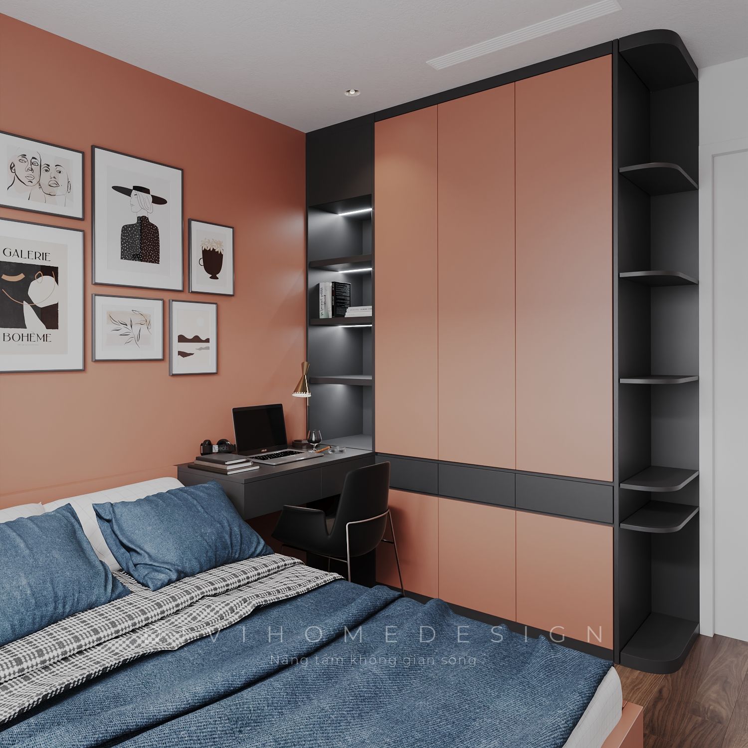 3.1 Thiết kế nội thất phòng ngủ master: