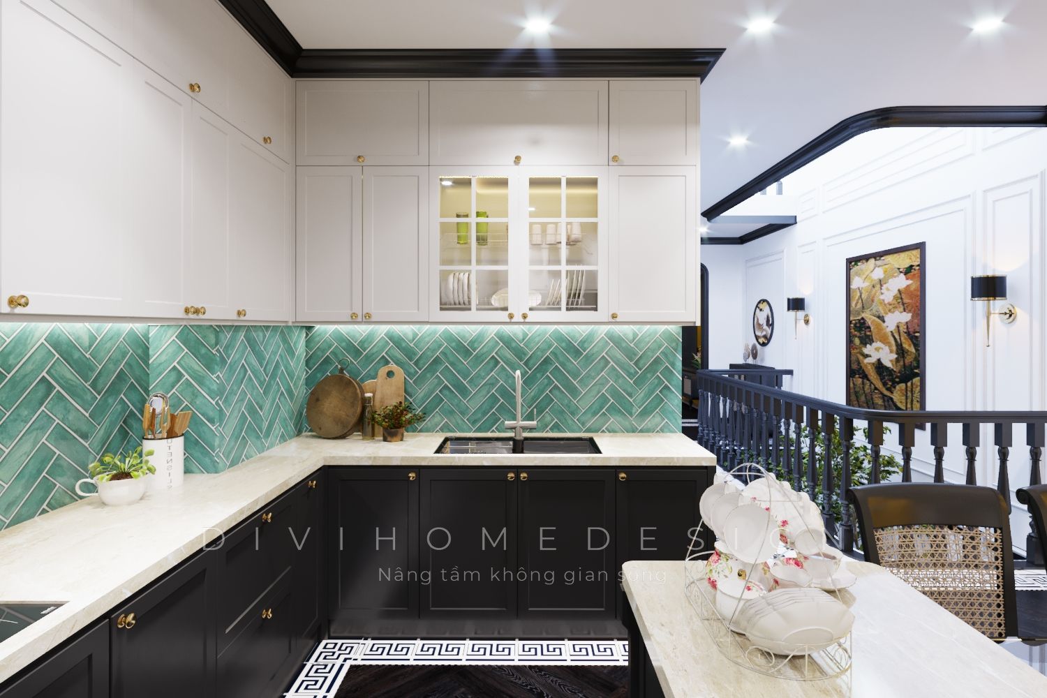 Phòng bếp nổi bật bởi màu sắc trang trí đầy ấn tượng