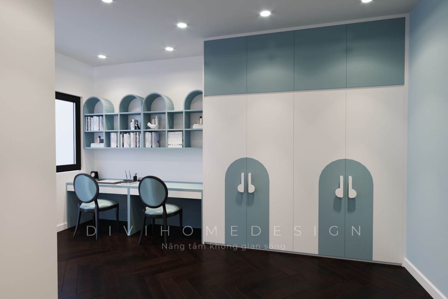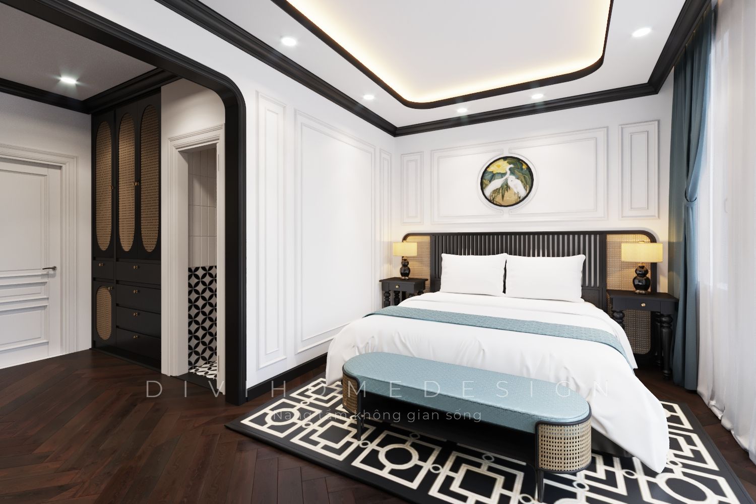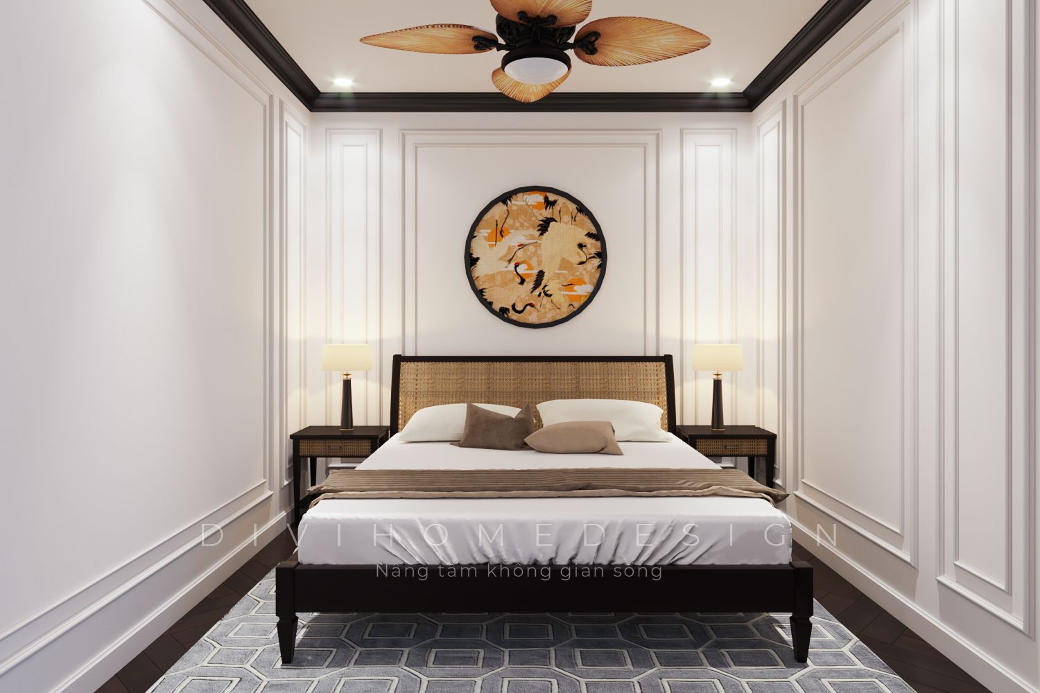 Nội thất phòng ngủ được bố trí linh hoạt phù hợp với lứa tuổi và nhu cầu sử dụng của chủ nhân. Nguyên tắc thiết kế không bị đặt nặng mà yếu tố con người được ưu tiên hàng đầu. Sao cho mang lại sự thoải mái và thuận tiện nhất cho sinh hoạt của người ở. Nếu như với phòng ngủ master và phòng ngủ phụ lớn, yếu tố Indochine vẫn được duy trì ở mức độ gần như hoàn hảo; thì tới phòng ngủ phụ nhỏ không gian này đã được biến tấu vô cùng dễ thương và sinh động dành cho trẻ nhỏ. Đây cũng là câu trả lời cho câu hỏi tại sao bạn cần thiết kế nội thất nhà ở, bởi vì khi đó nhu cầu của bạn được tối ưu nhất, giá trị sử dụng và yếu tố thẩm mỹ được cần bằng tạo nên không gian sống tiện nghi và thoải mái.