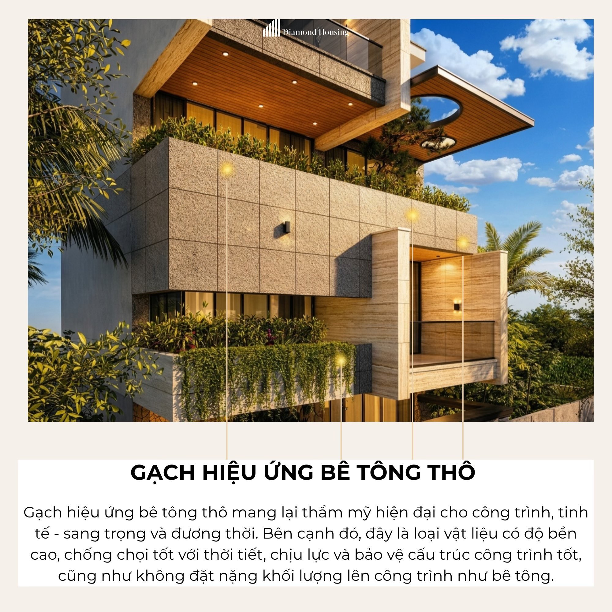 Phương án 2: Gạch hiệu ứng bê tông thô – Sự tinh tế và bền bỉ vượt thời gian