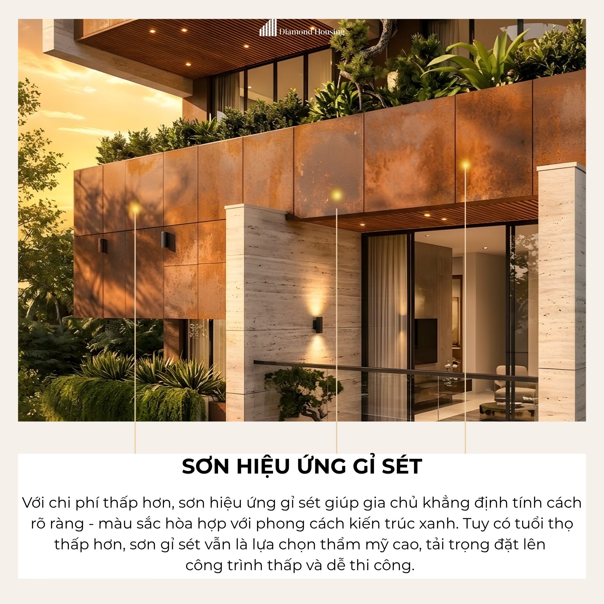 Sơn hiệu ứng gỉ sét (corten steel effect) đang trở thành xu hướng trong kiến trúc xanh và hiện đại.