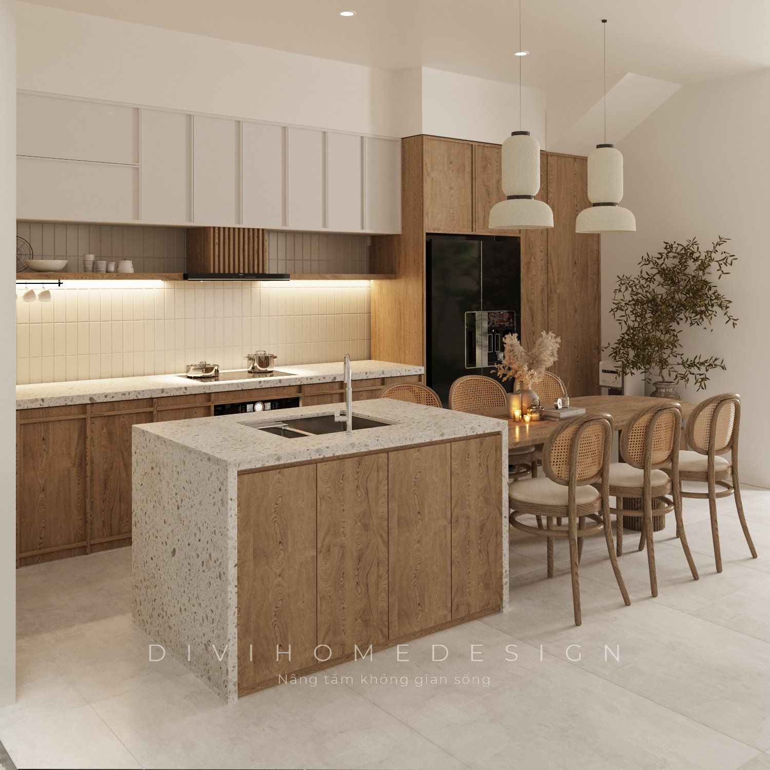 - Bàn đảo: Tạo ra một không gian làm việc linh hoạt và chế biến thêm, cũng như làm điểm nhấn cho phòng bếp.