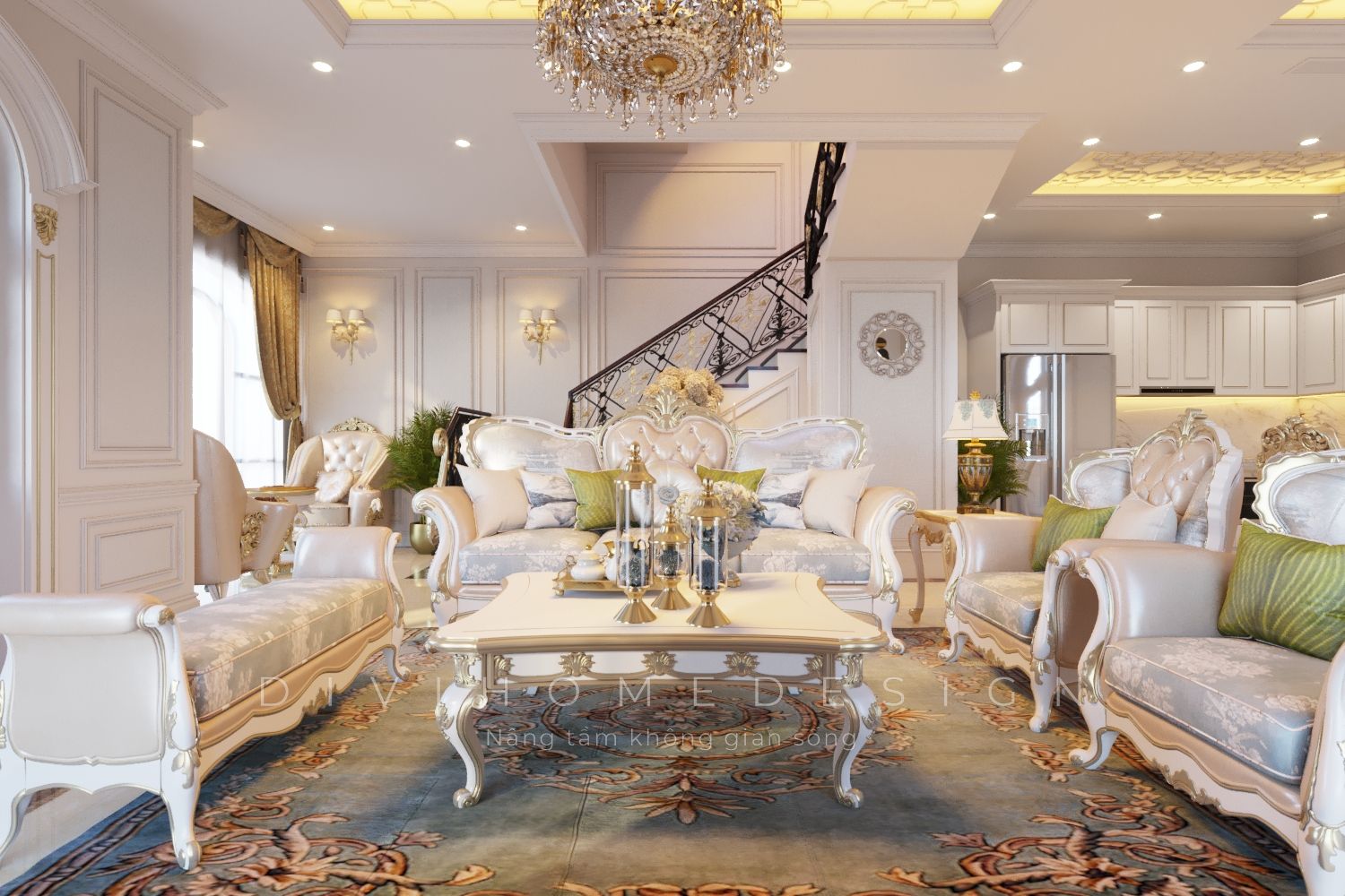 2.2 Mẫu thiết kế nội thất phòng khách biệt thự tân cổ điển: