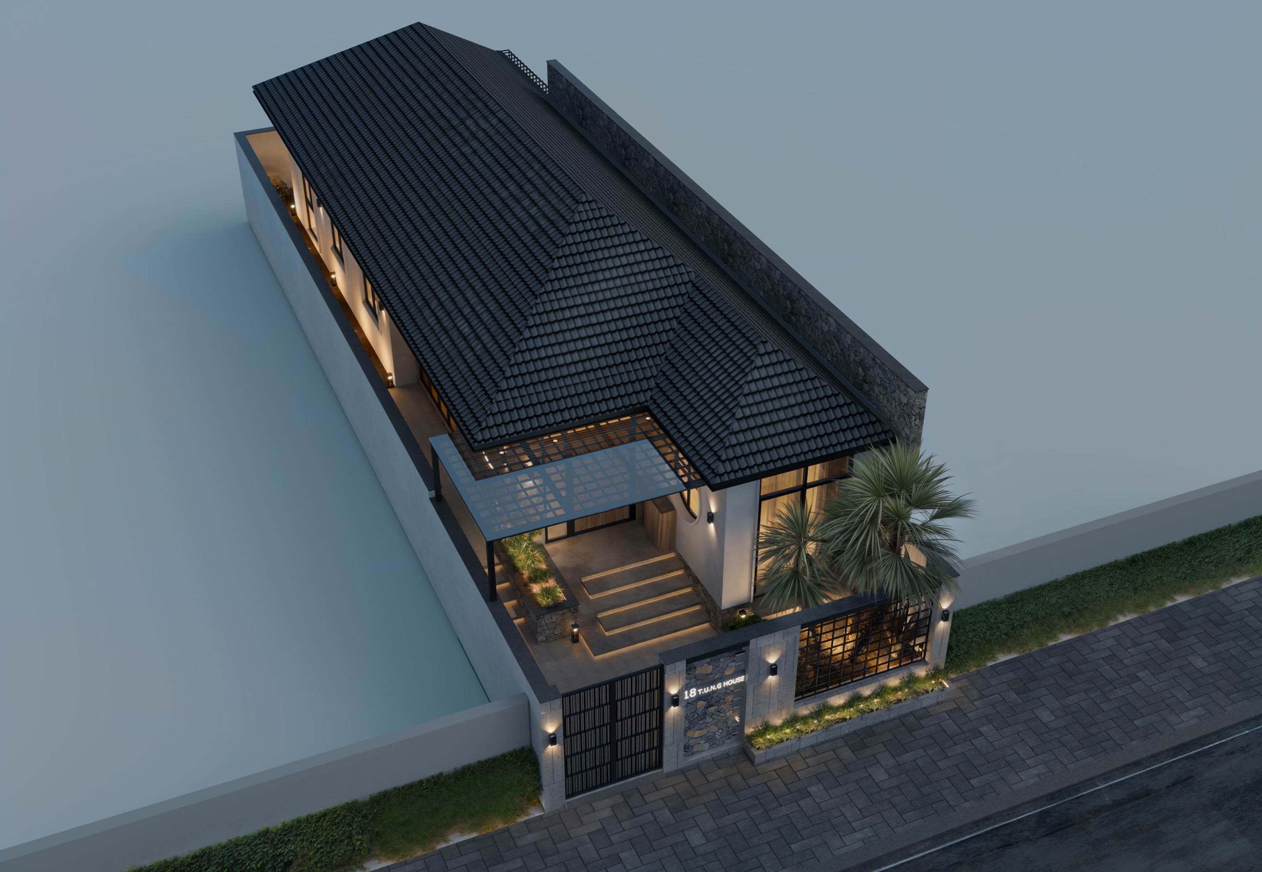 Hệ mái dốc đậm giúp thoát nước tốt, phù hợp với khí hậu Việt Nam và lại mang hơi thở Á Đông nhẹ nhàng.