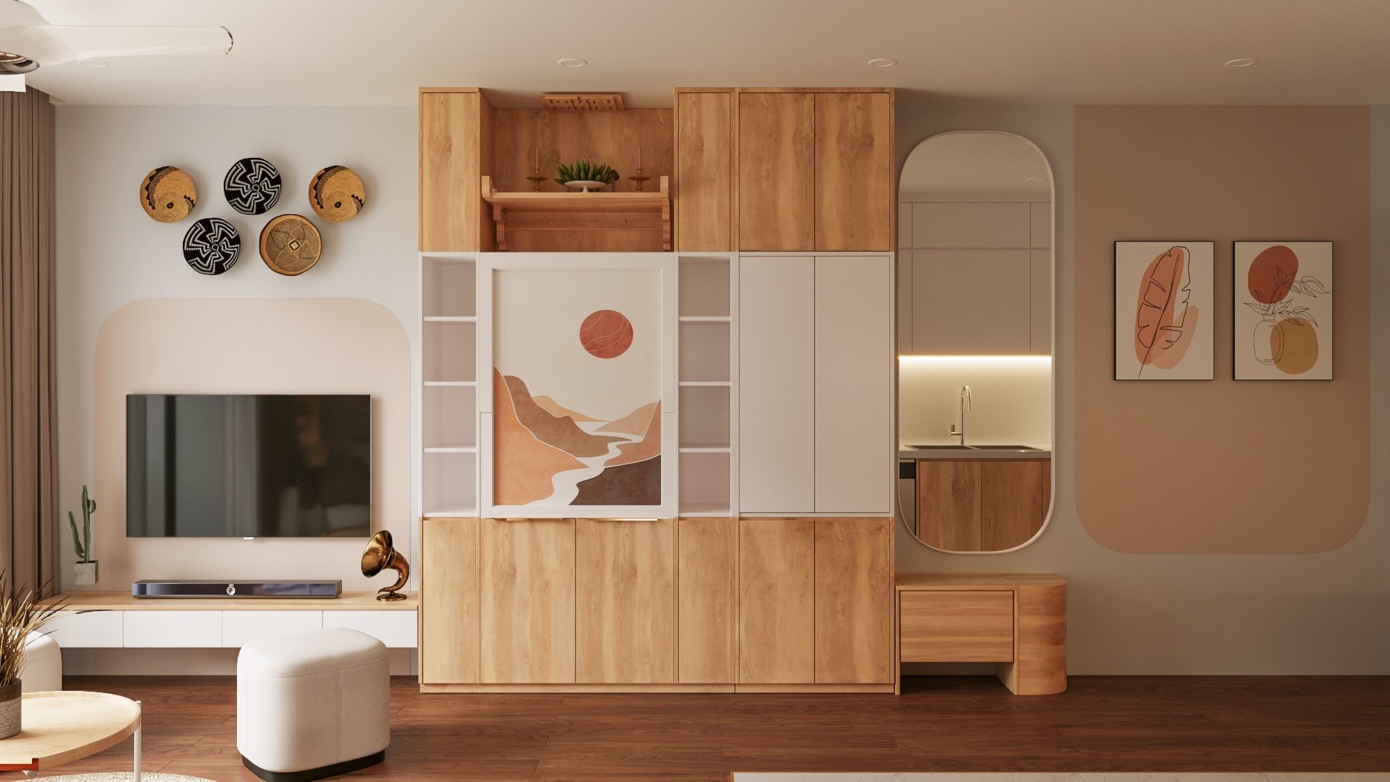 Gỗ công nghiệp không chỉ mang lại thẩm mỹ trong màu sắc mà còn là lựa chọn hợp lý về mặt chi phí.