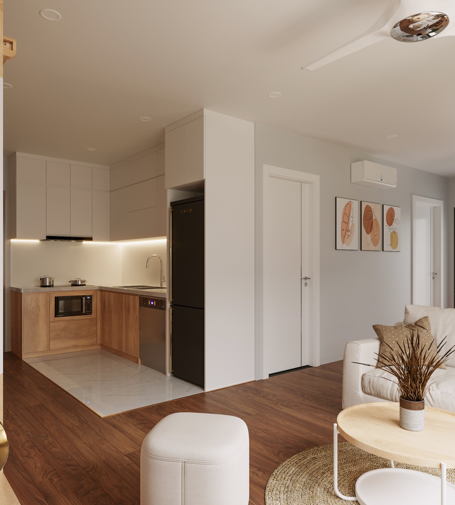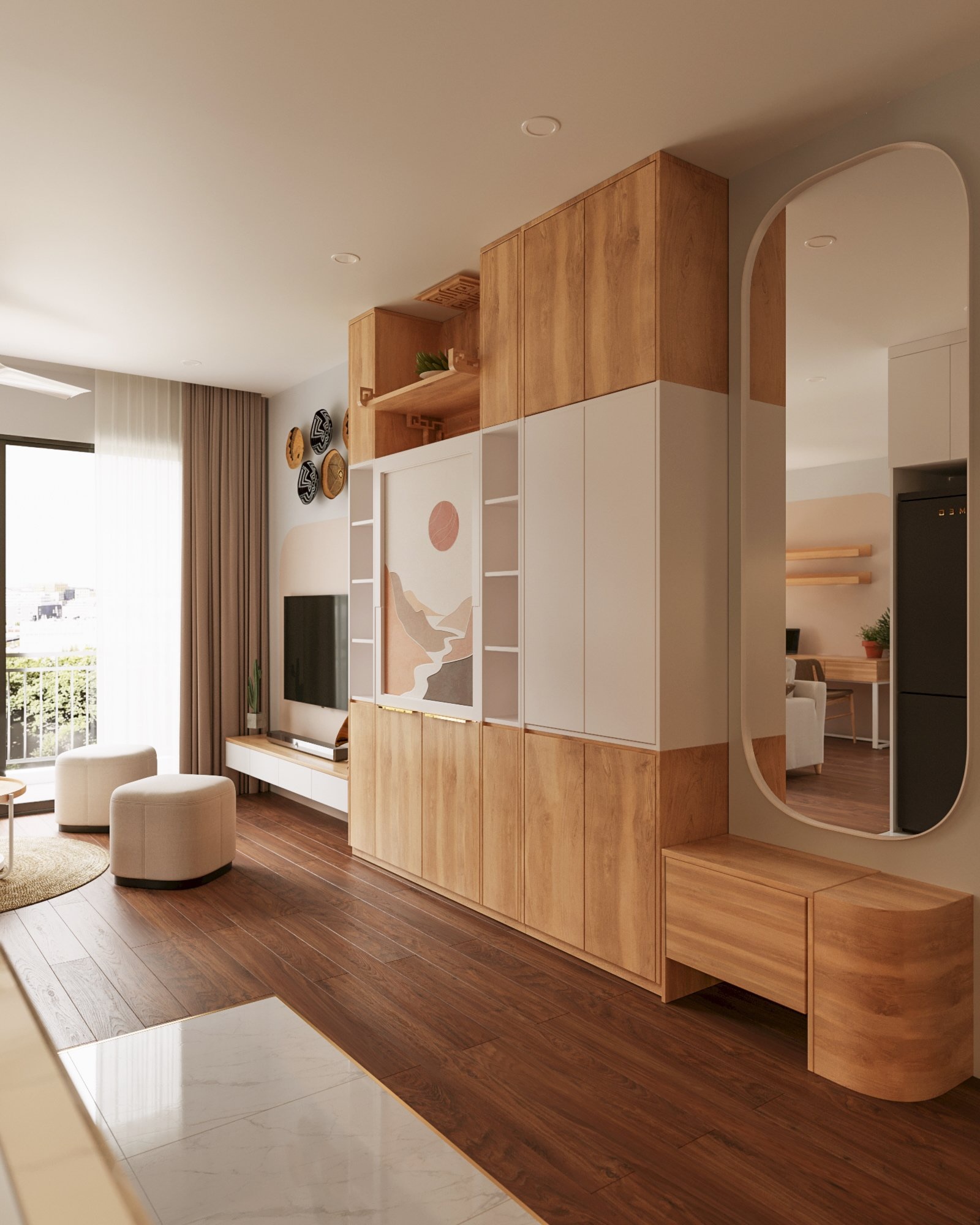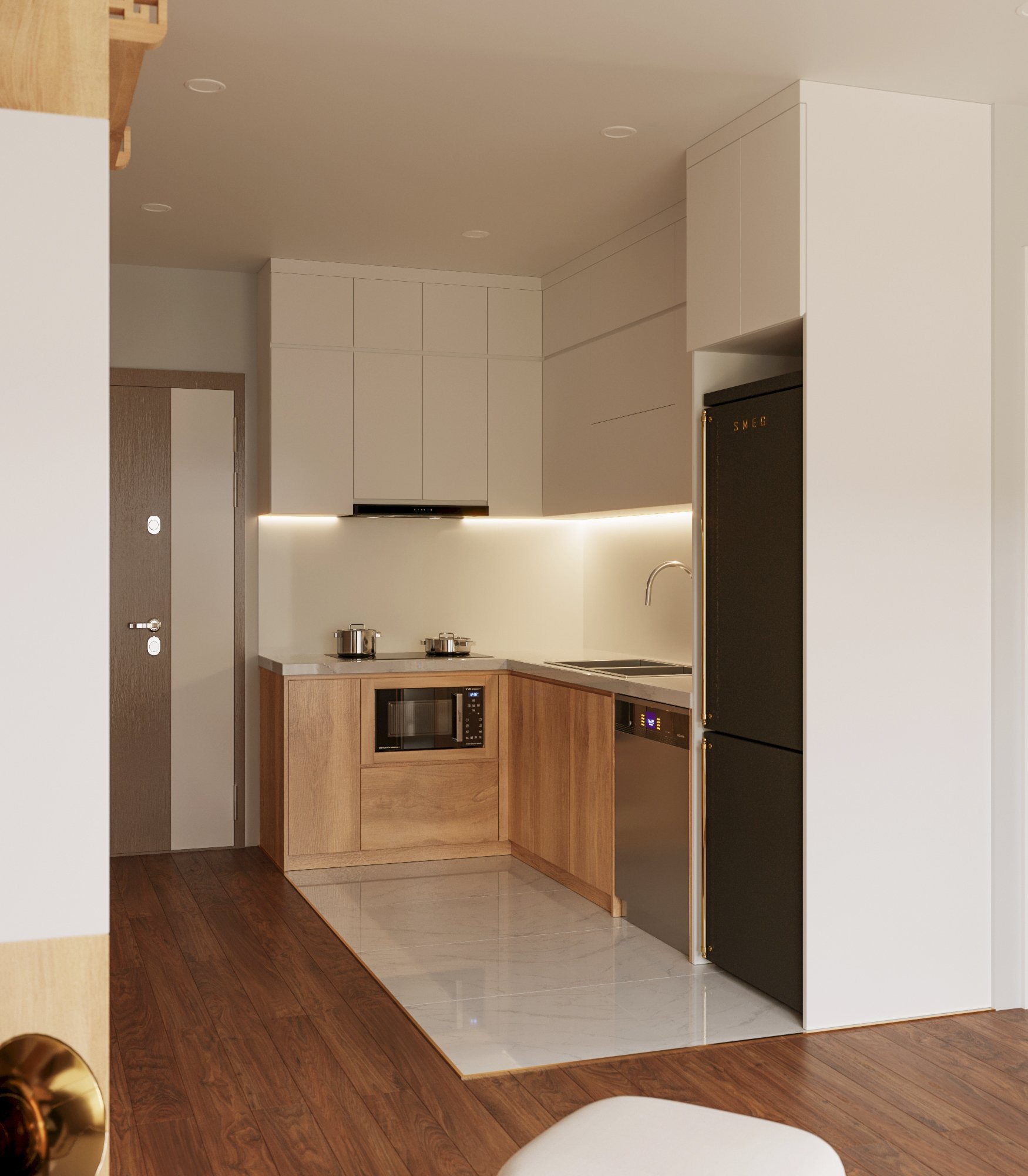 Khu vực ra vào được thiết kế rất clean và tối giản để tiết kiệm không gian.