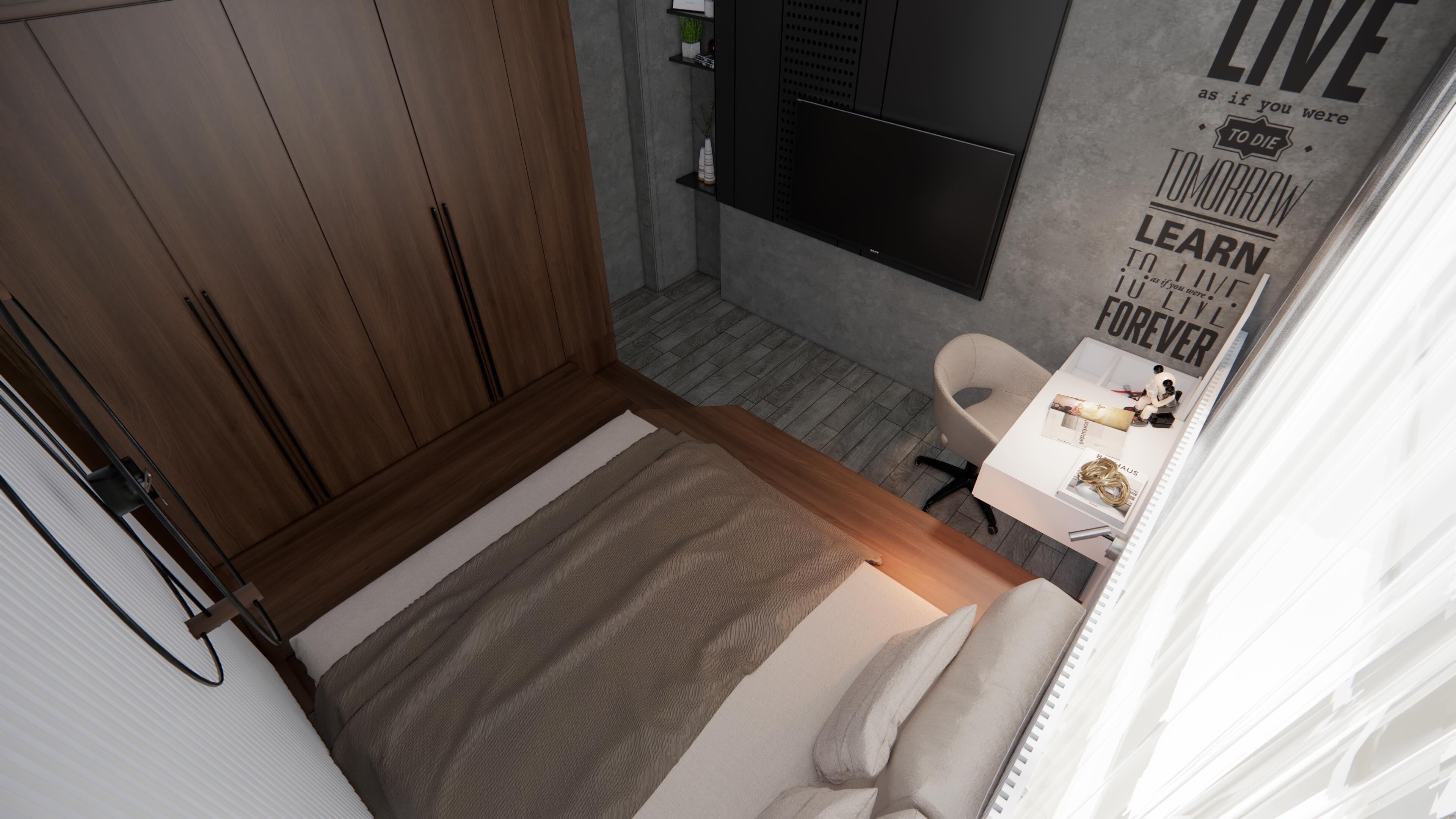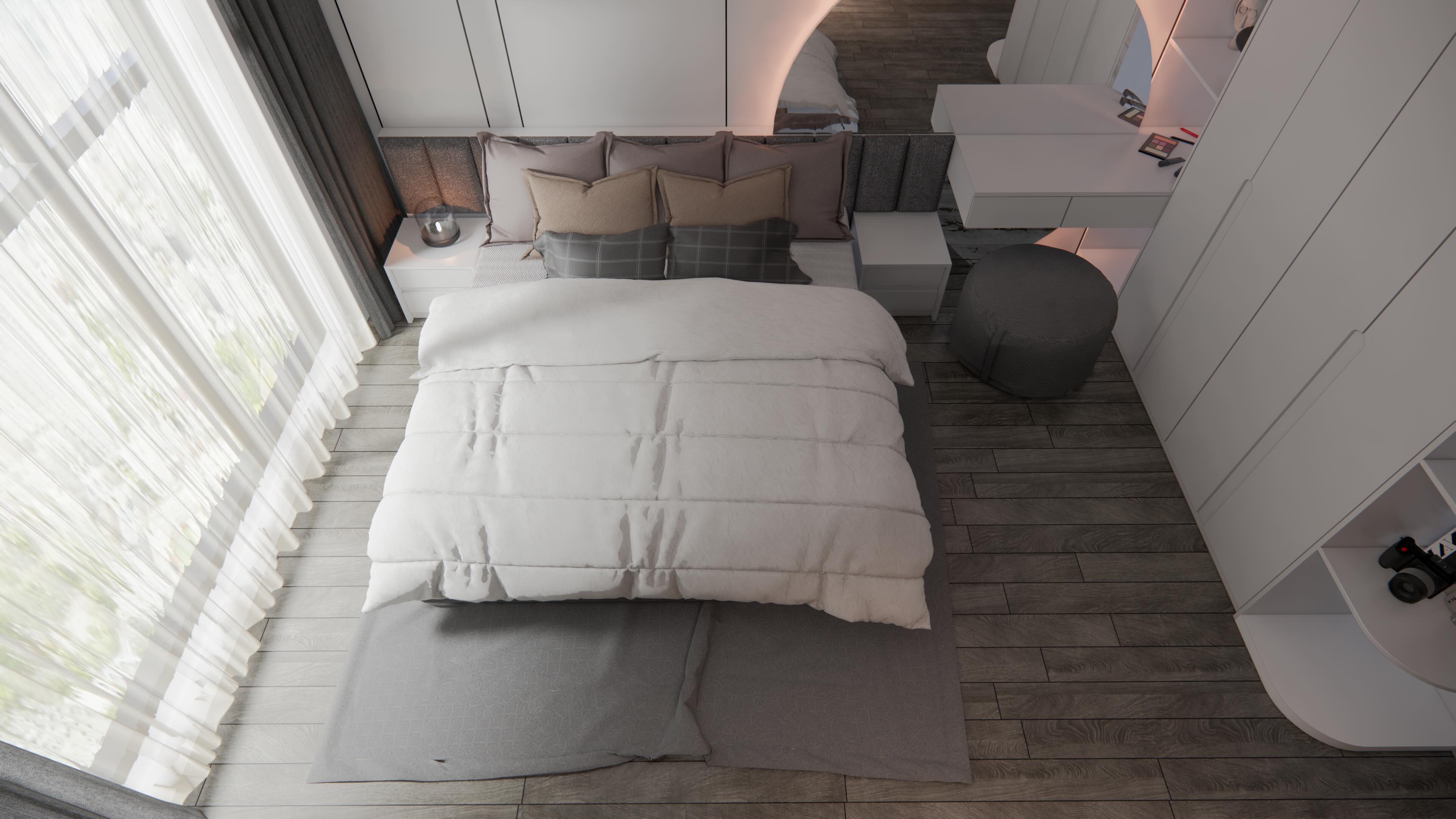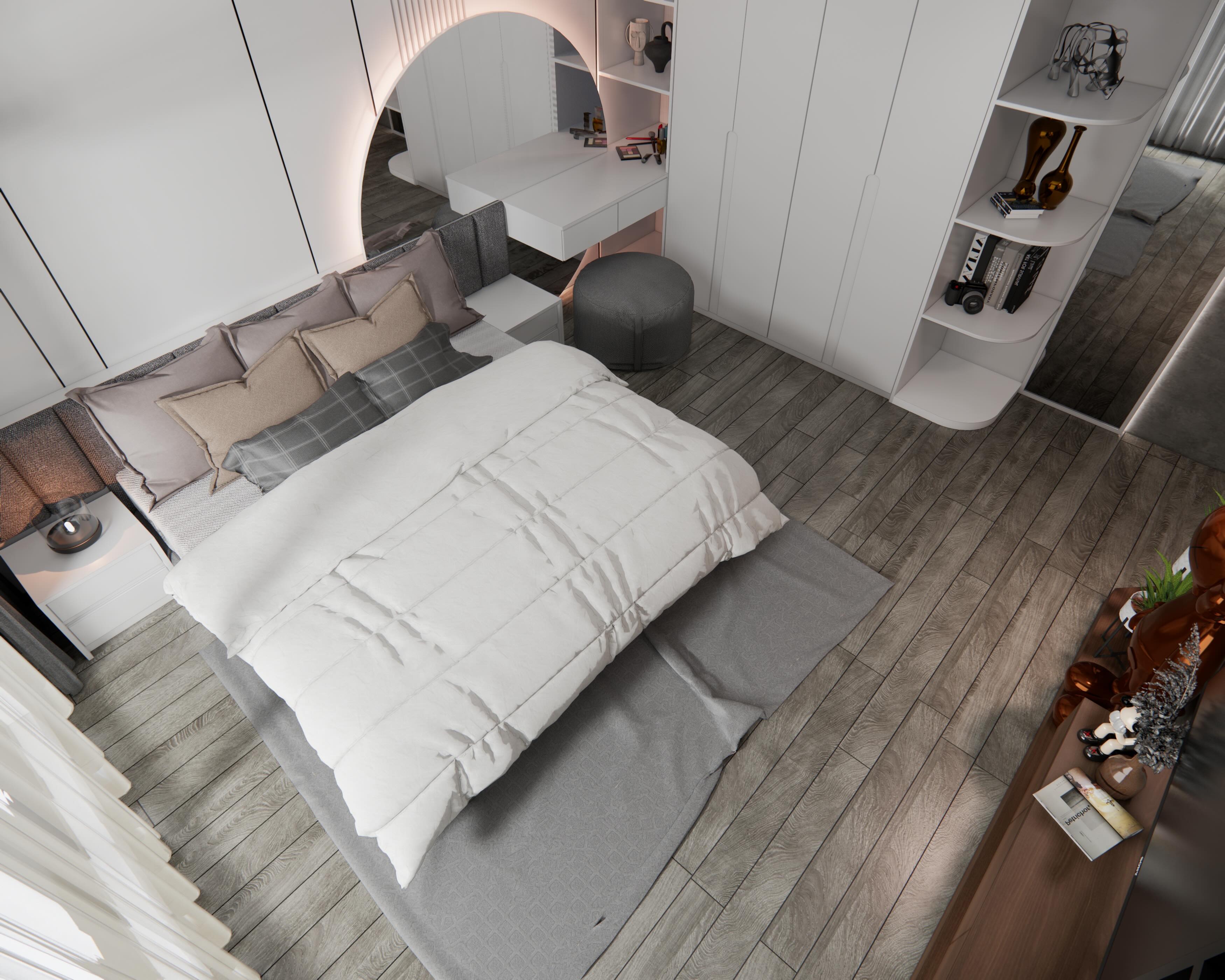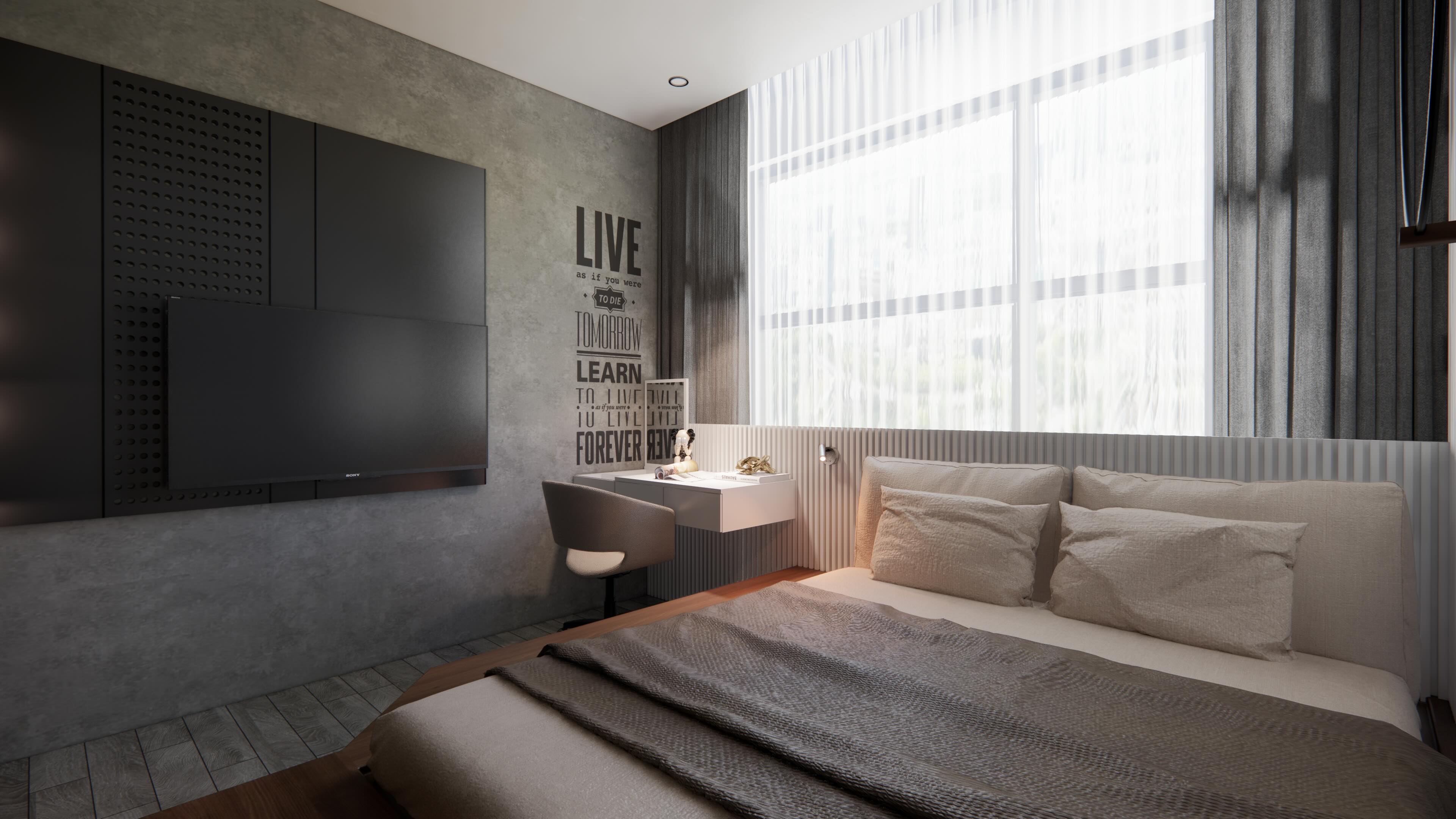 Phòng ngủ nhỏ số 1 được sử dụng tone màu xám nhẹ nhàng hơn.