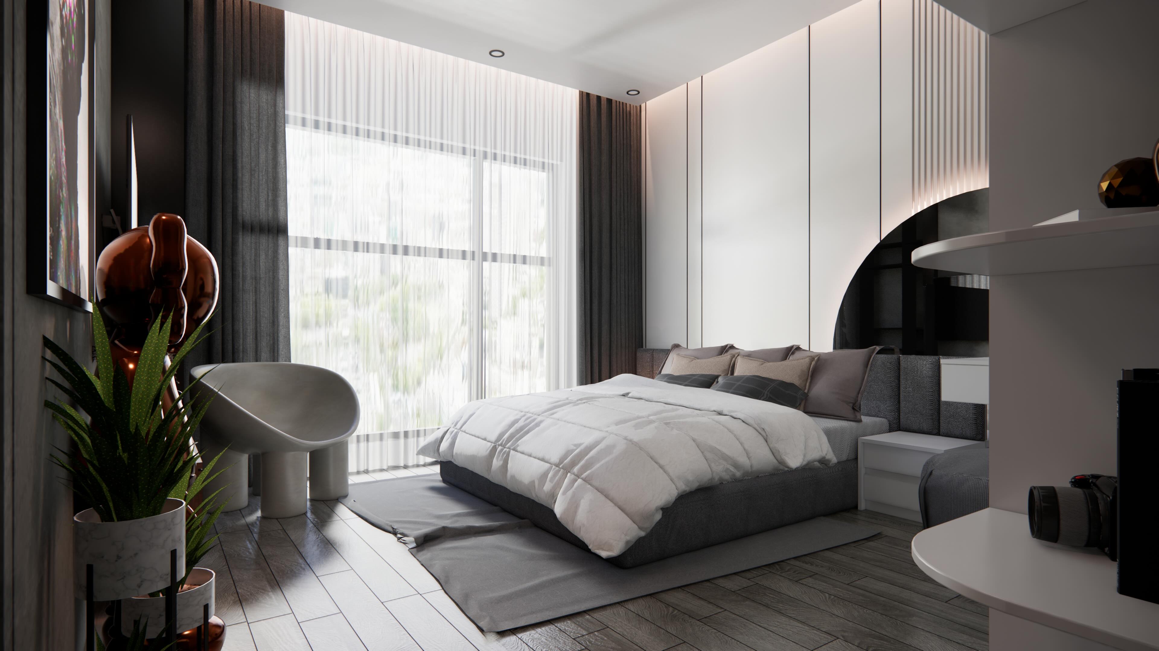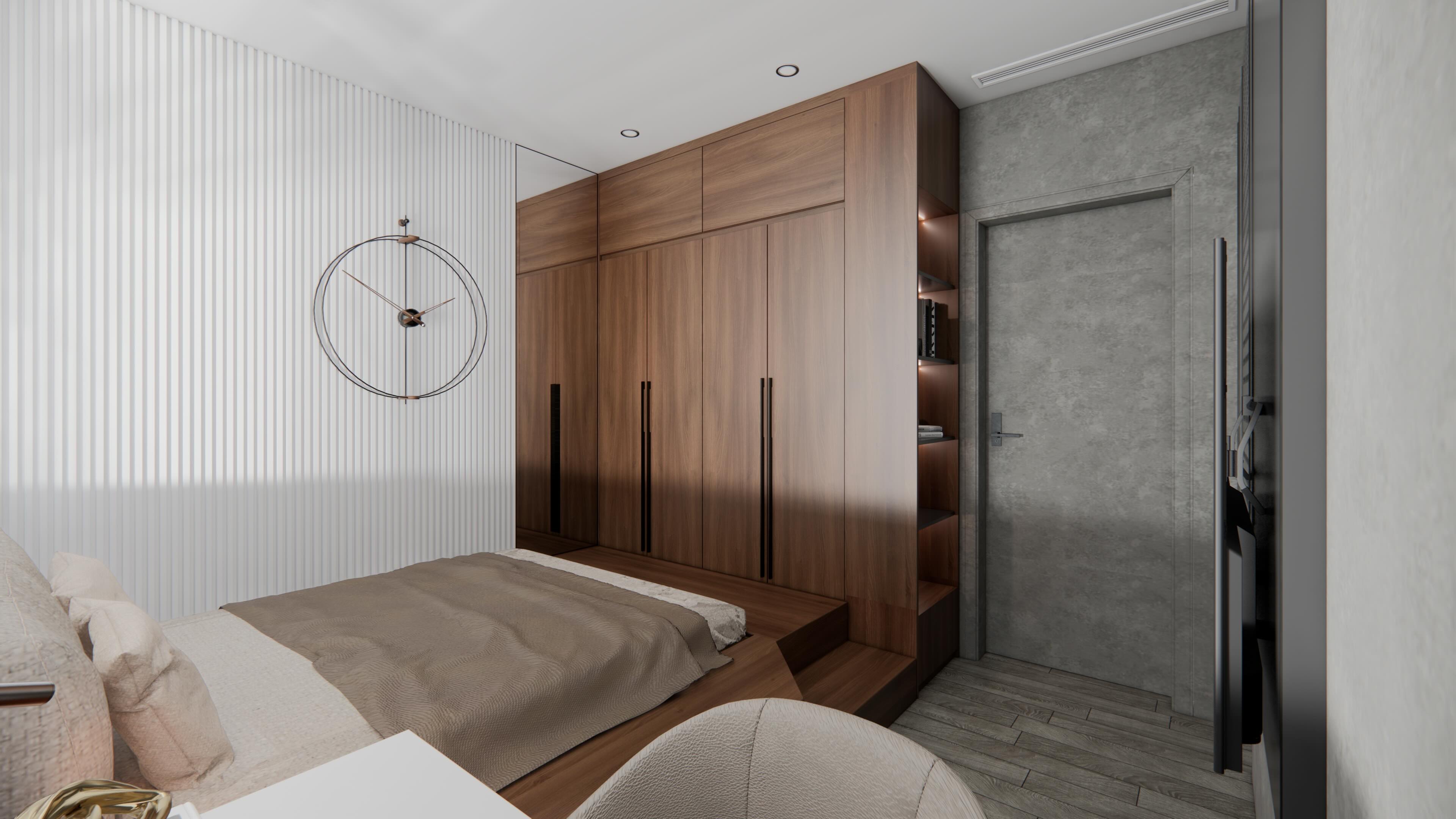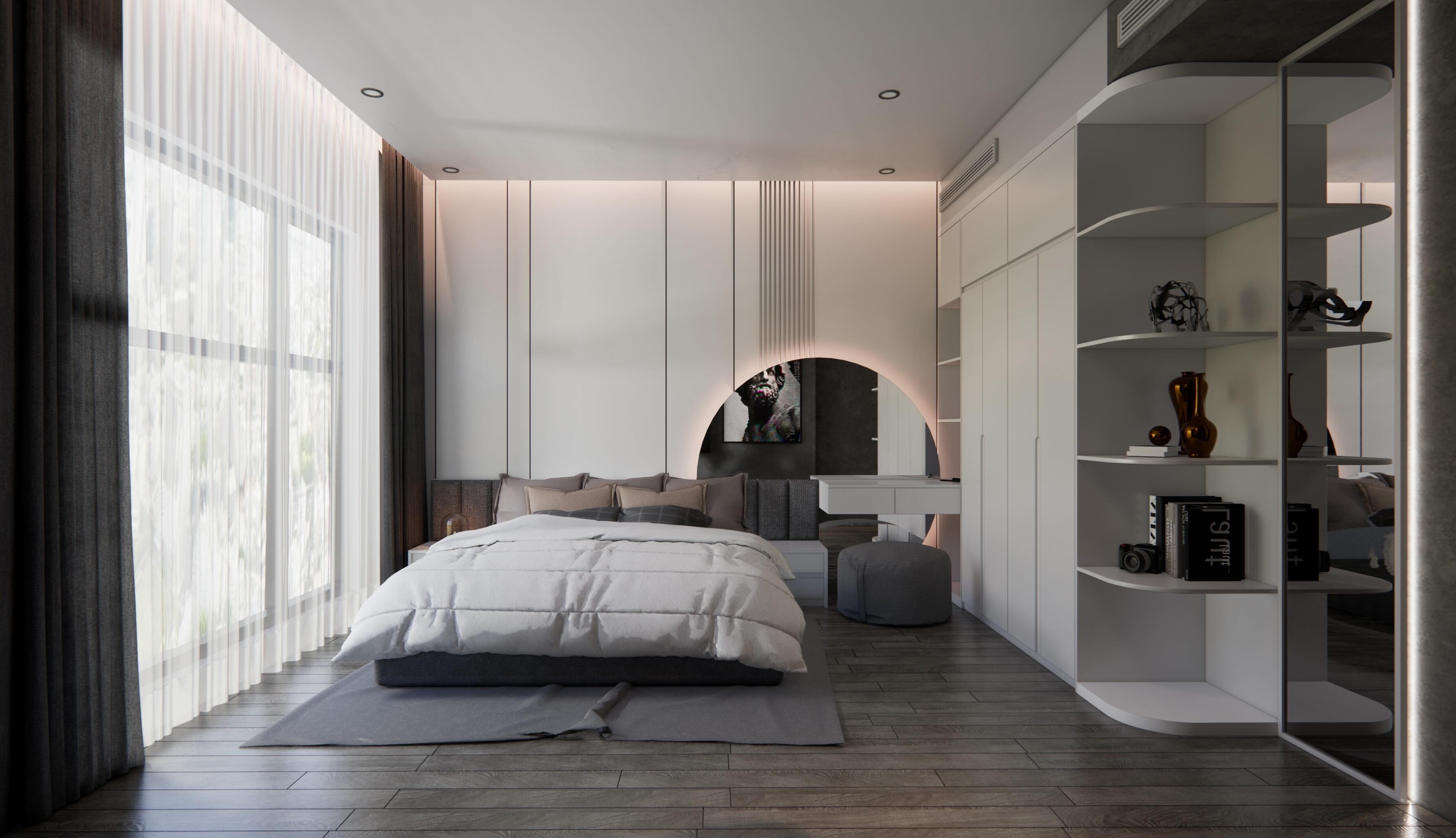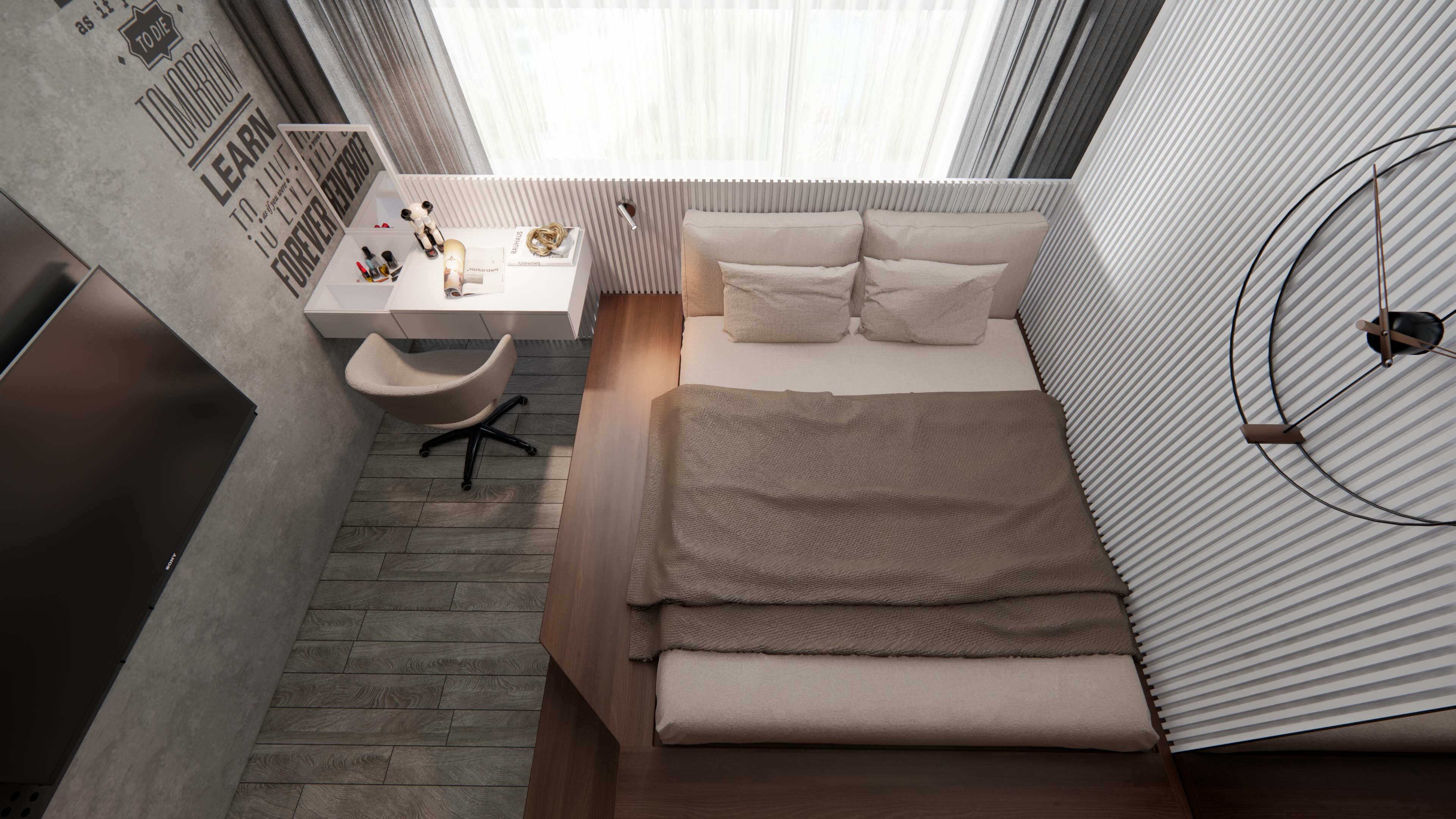 Phòng ngủ nhỏ số 1 được sử dụng tone màu xám nhẹ nhàng hơn.