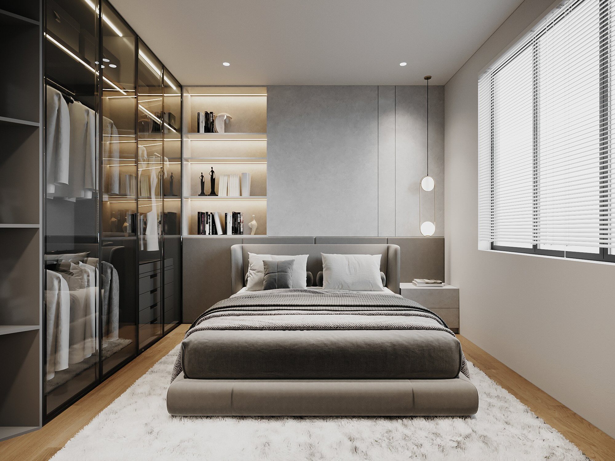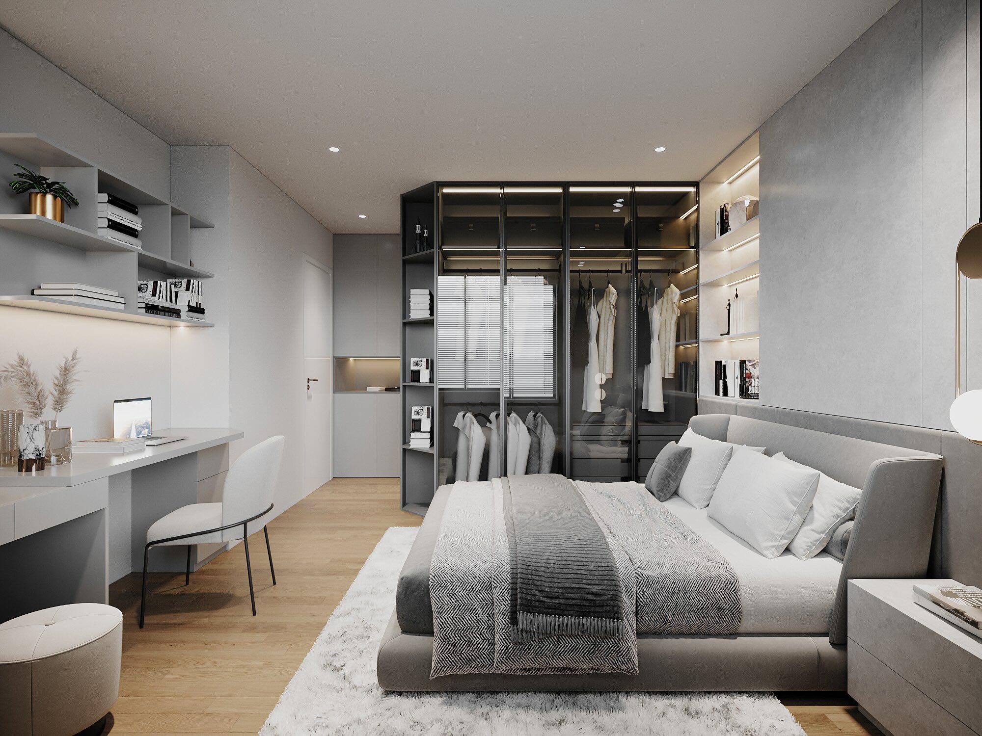 Đầy đủ, tiện nghi những vẫn có không gian thoải mái là thiết kế của phòng ngủ master.