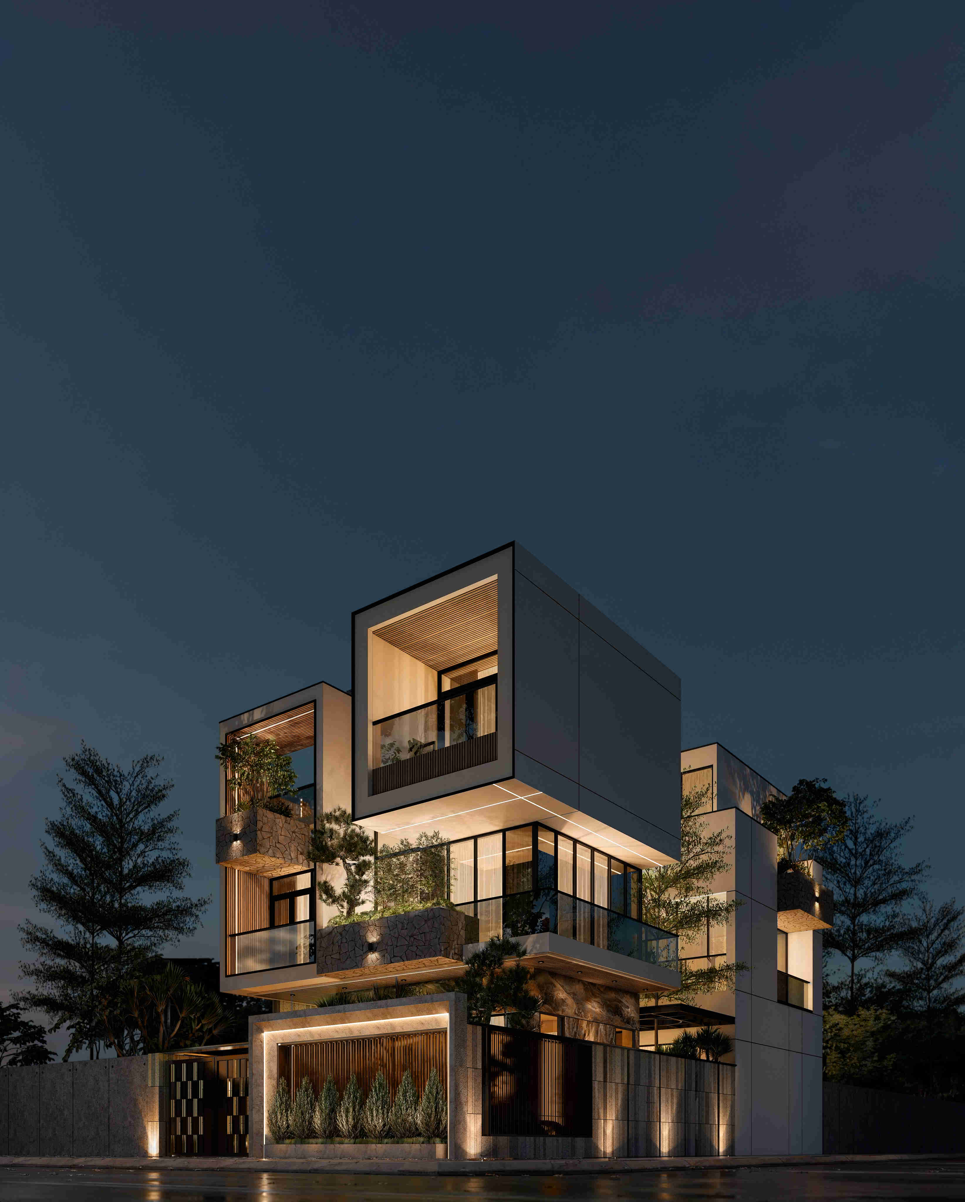 V.H Villa vượt xa ngoài quy chuẩn của một công trình mang thiết kế tối giản. Các khối kiến trúc ấn tượng mang hơi thở quốc tế đã đem tới cho công trình vẻ thẩm mỹ đặc biệt, khẳng định phẩm chất của gia chủ cũng như trở thành không gian sinh hoạt đầy tiện nghi.