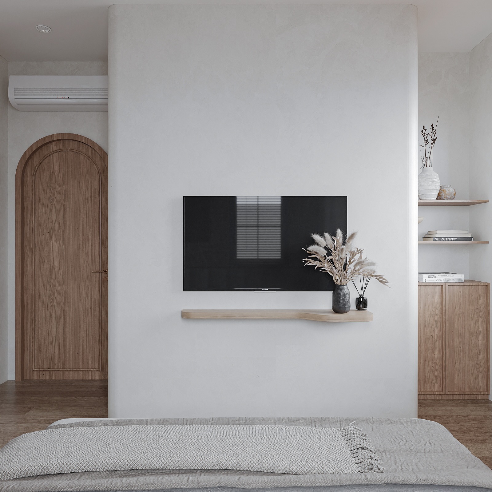 Tivi kết hợp các đồ nội thất gỗ trong căn phòng