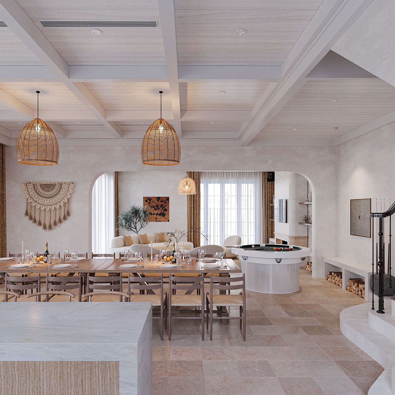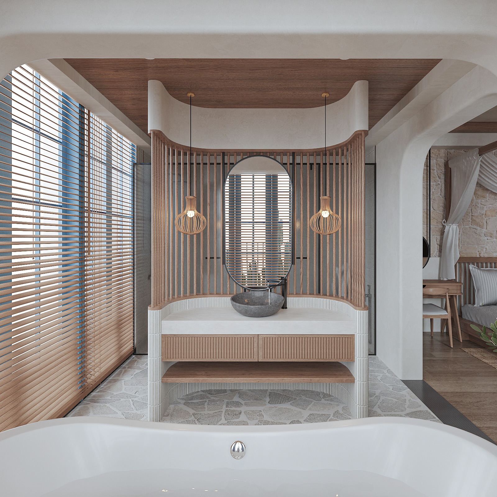 Việc sử dụng vật liệu tự nhiên và ánh sáng tự nhiên được tối ưu hóa, mang lại cảm giác ấm cúng nhưng vẫn vô cùng thoáng đãng.