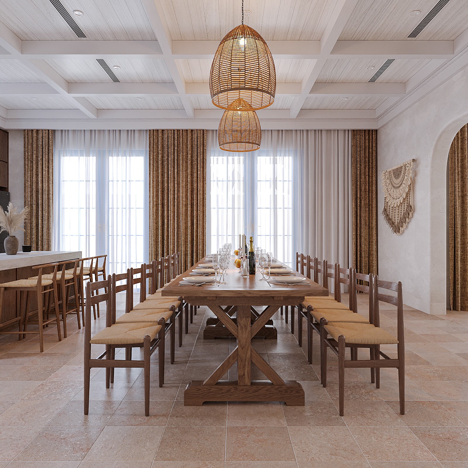 Bộ bàn ăn Farmhouse tối giản hài hòa
