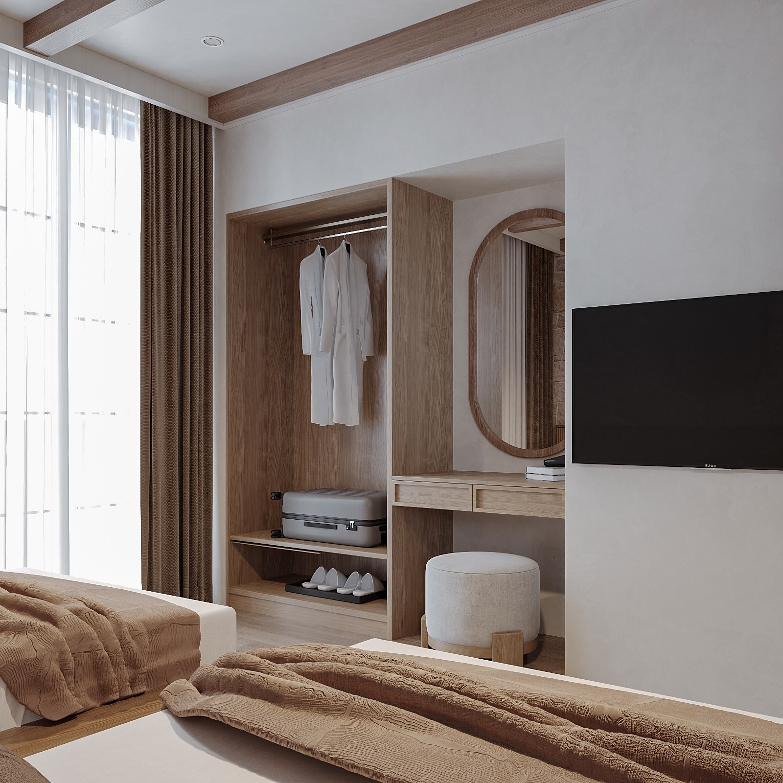 Các đồ nội thất vẫn đi theo tone nâu - be tinh tế