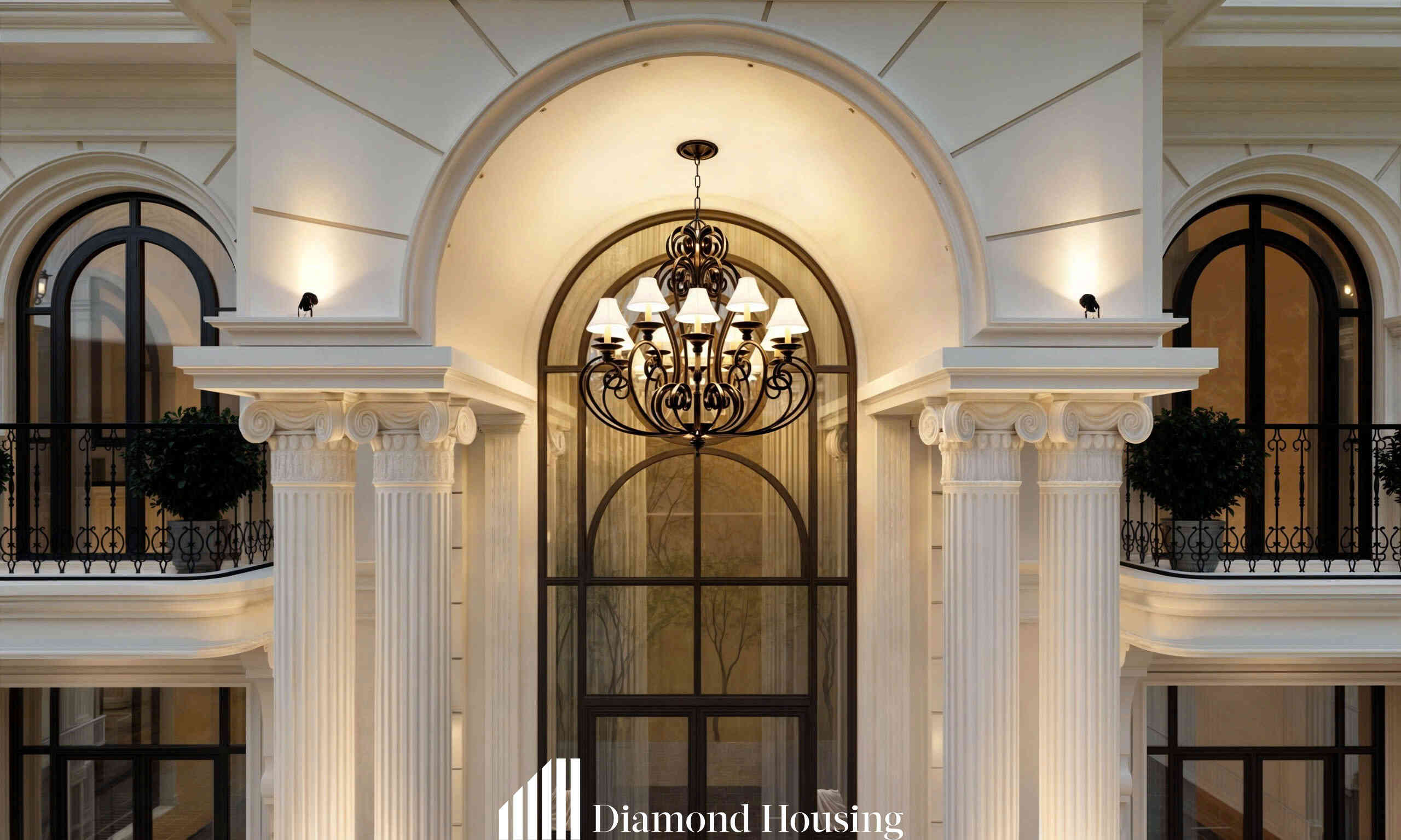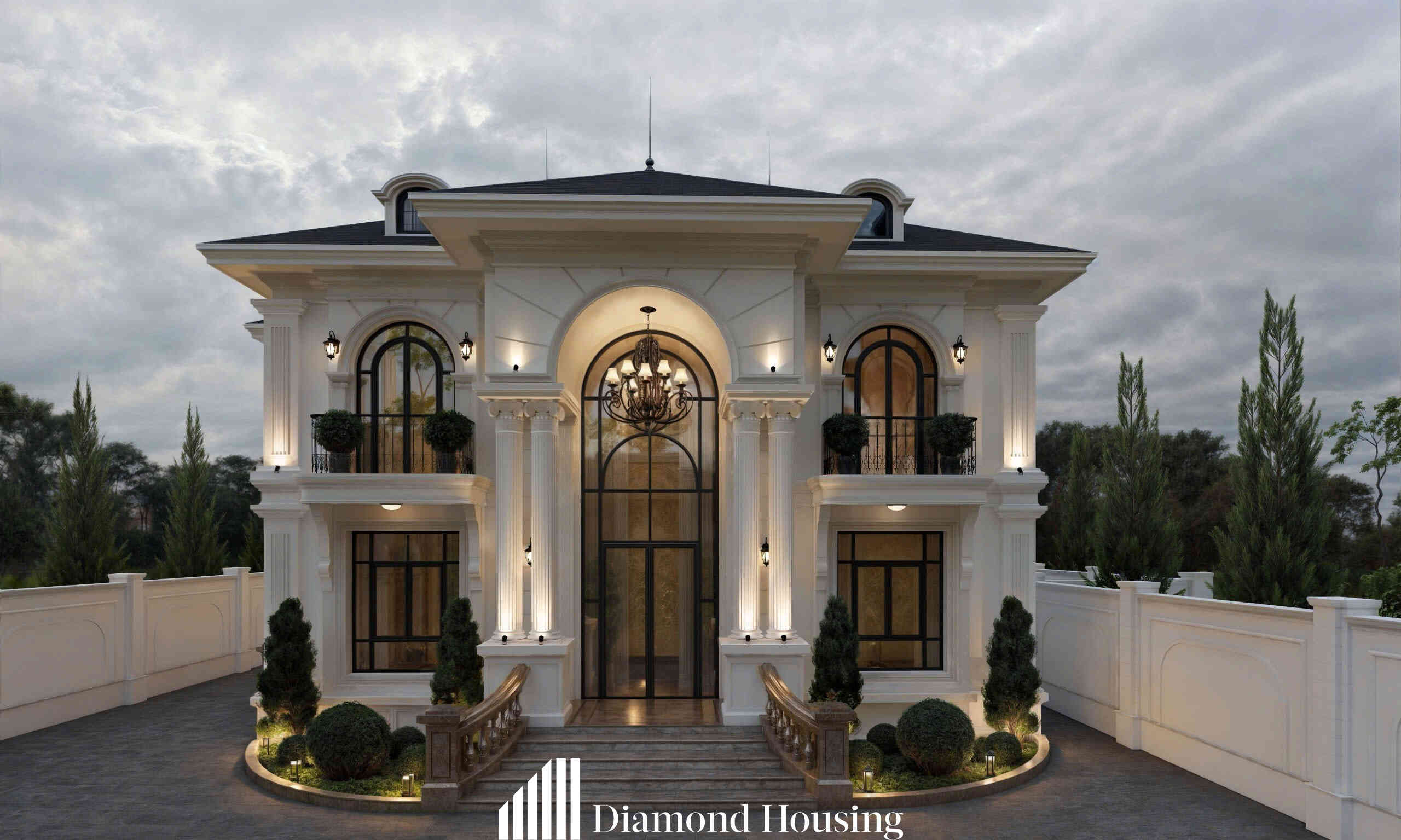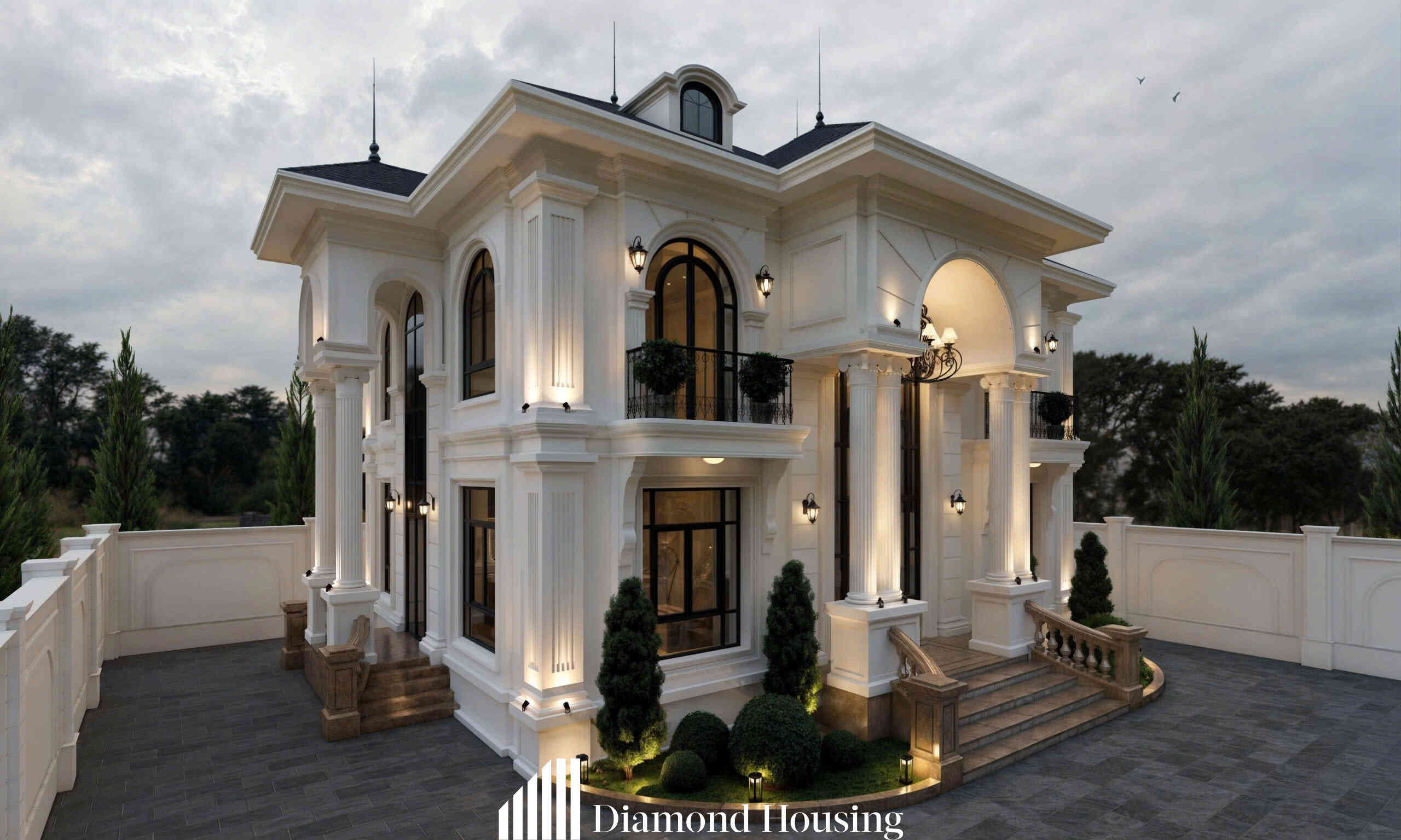Bề thế, tráng lệ nhưng không hề phô trương là cách mà L.G Villa khoác lên mình phong cách tân cổ điển với tone trắng kem ấm áp. Diamond Housing thường giúp gia chủ tối ưu hóa bài toán chi phí một cách tốt nhất - bởi đây là phong cách thiết kế đòi hỏi không chỉ tỉ mỉ trong kiến trúc mà còn ở nguồn ngân sách tốt để tái hiện hơi thở cổ điển sang trọng, nguy nga. Công trình được Diamond Housing thiết kế và thi công trọn gói.