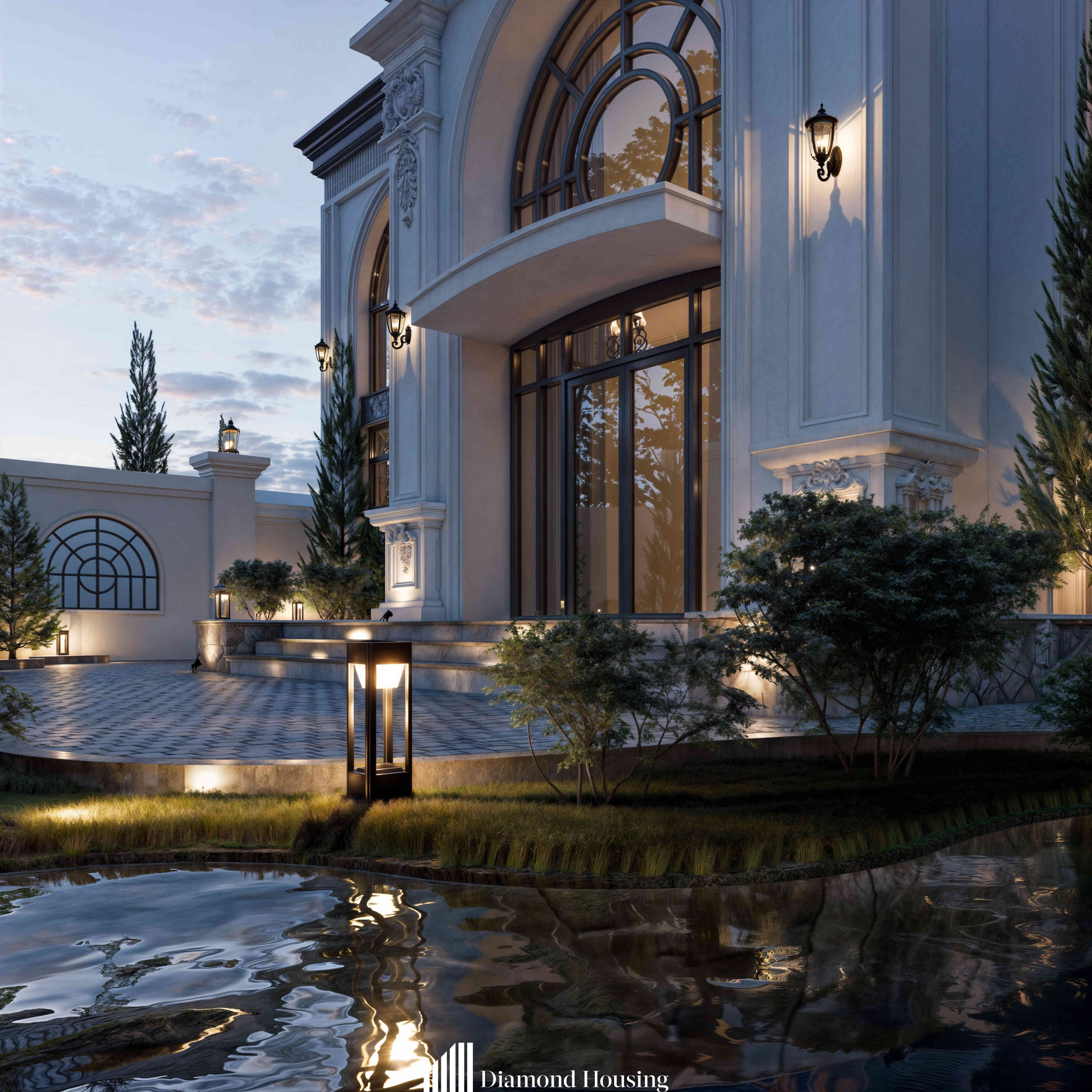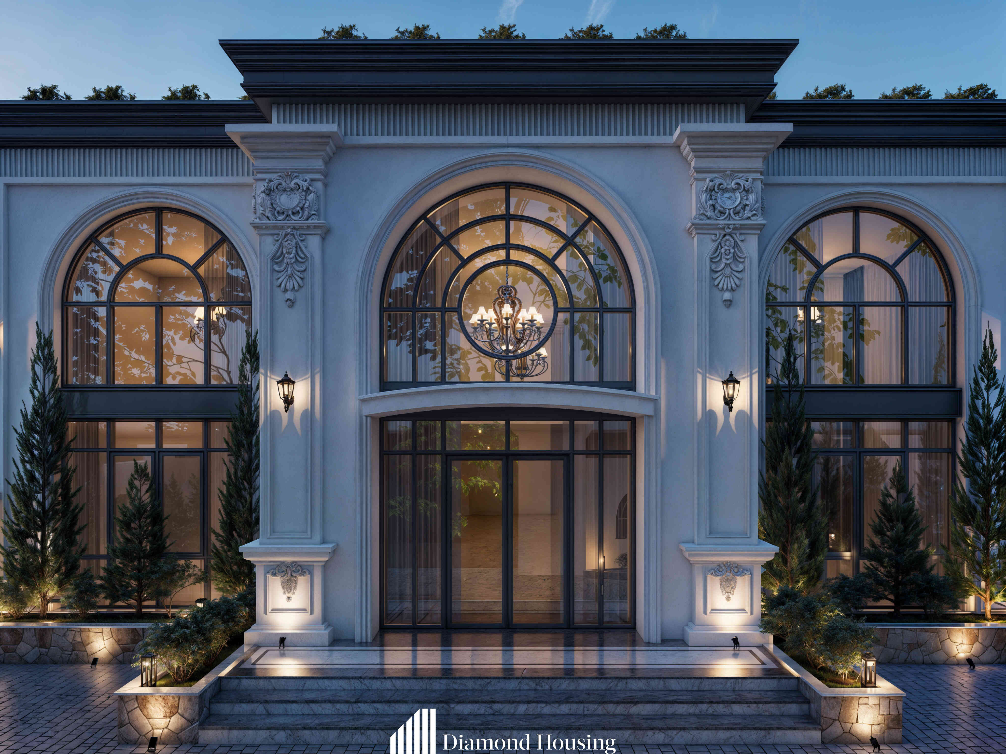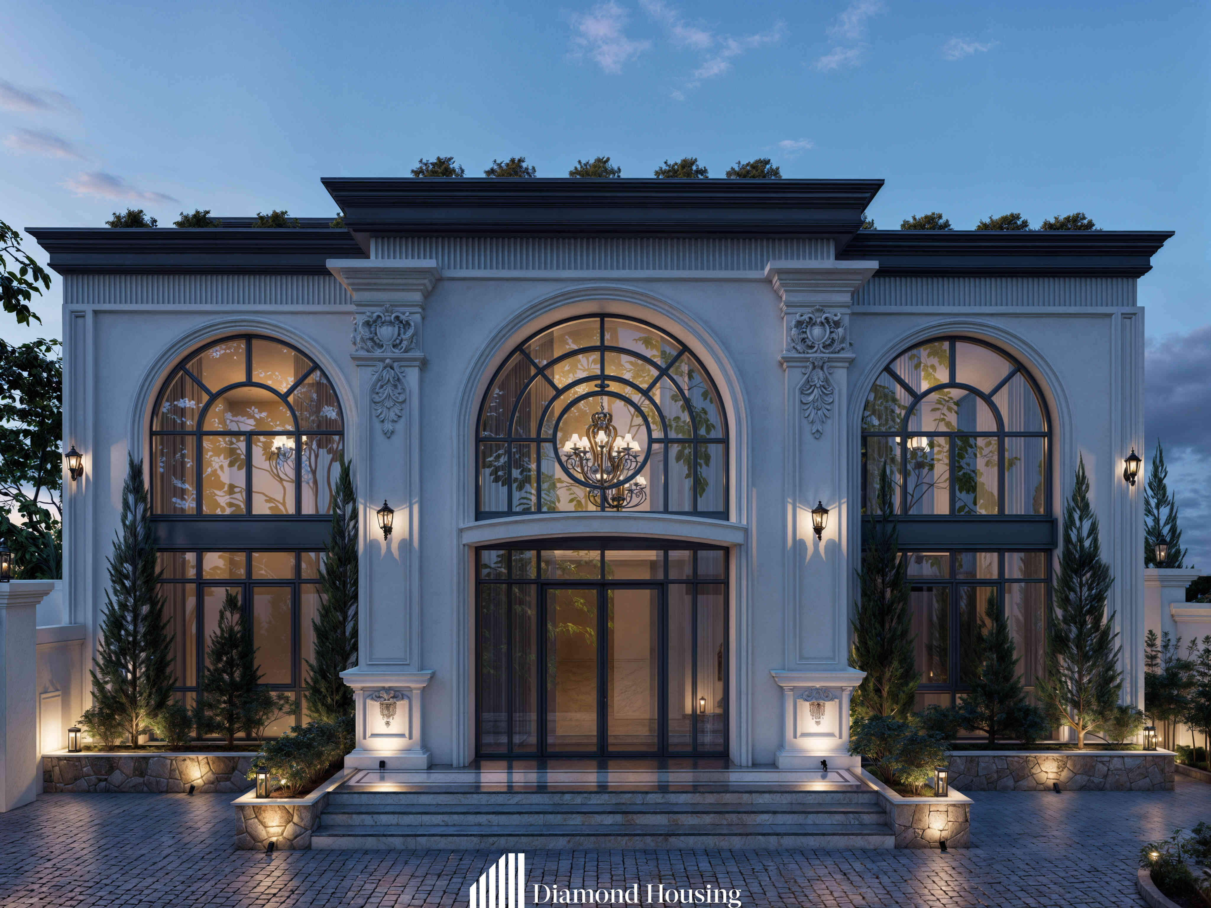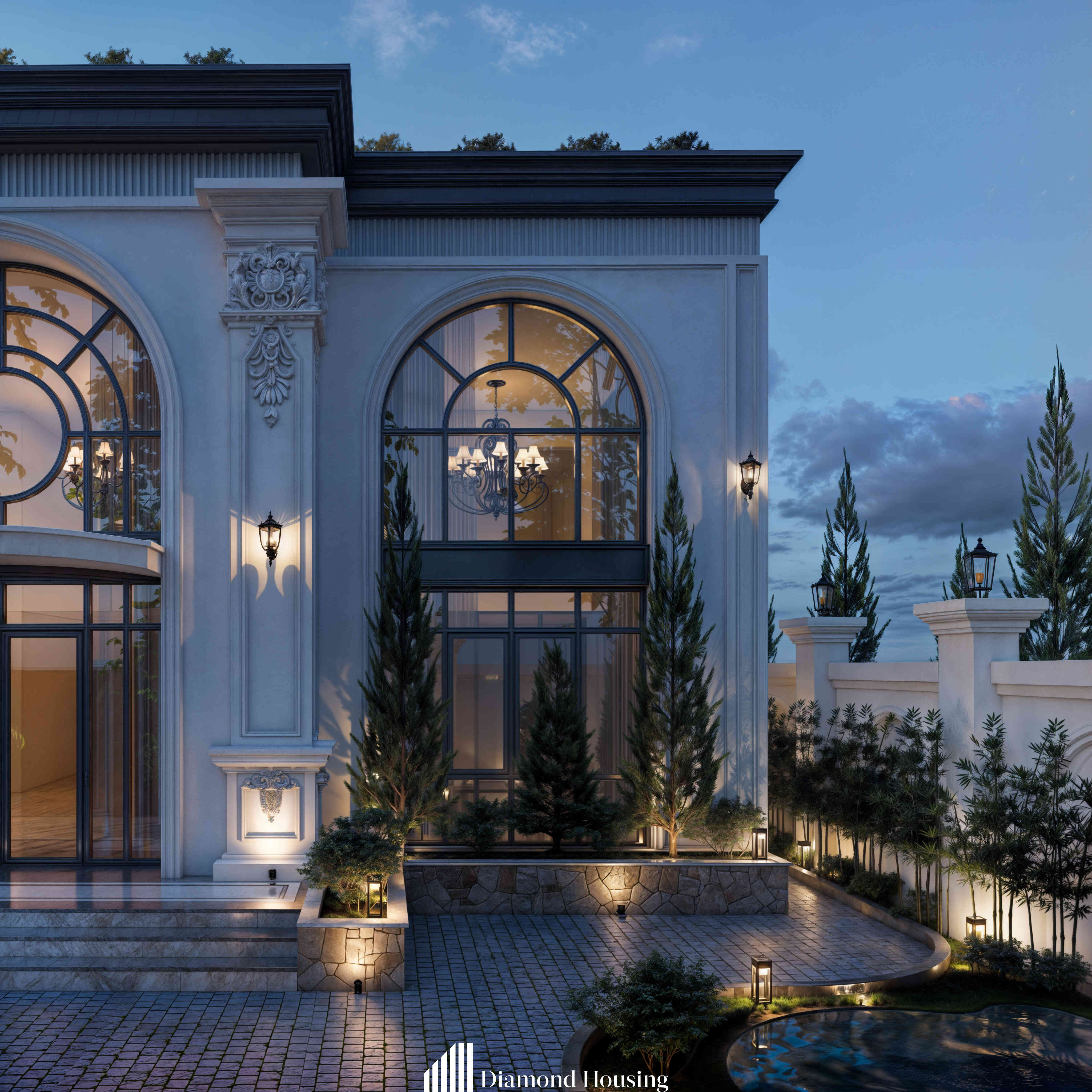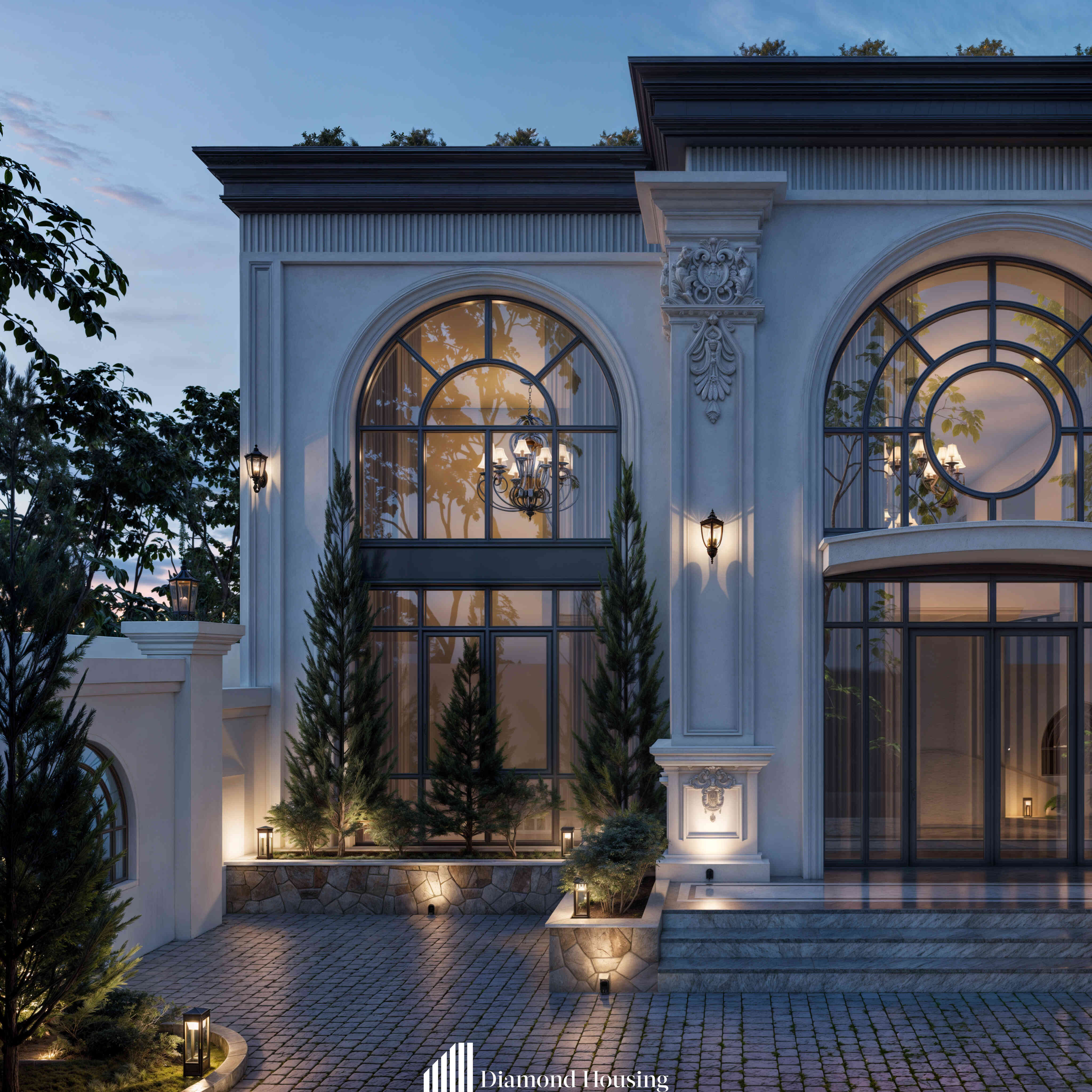 Với các công trình phong cách tân cổ, kết hợp ánh sáng tự nhiên và nhân tạo là vô cùng quan trọng. Ánh sáng nhân tạo không chỉ mang lại vẻ thẩm mỹ khác biệt mà còn tạo chiều sâu cho công trình.