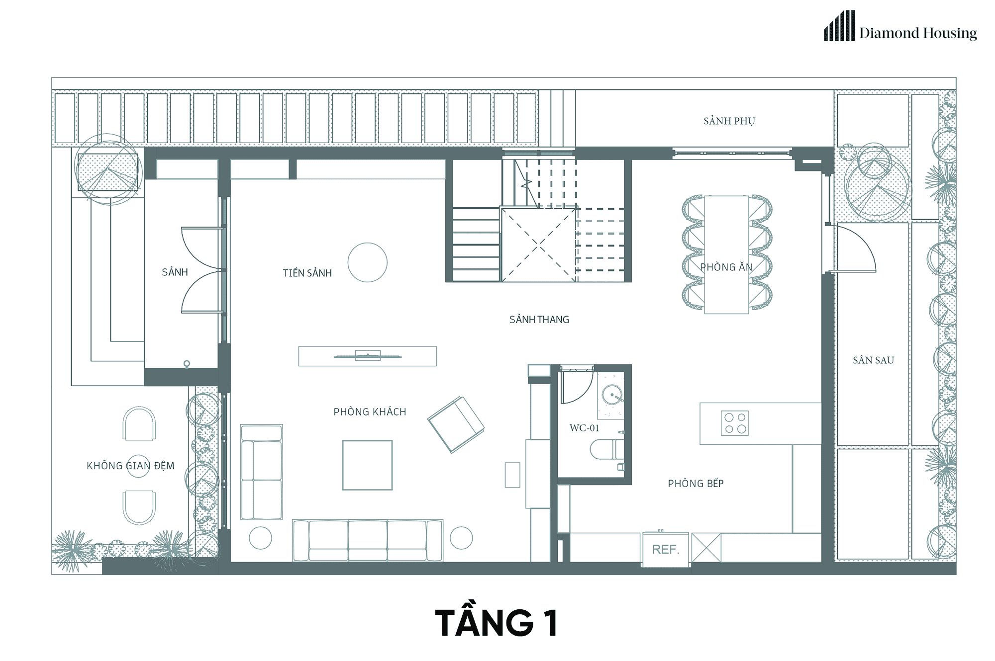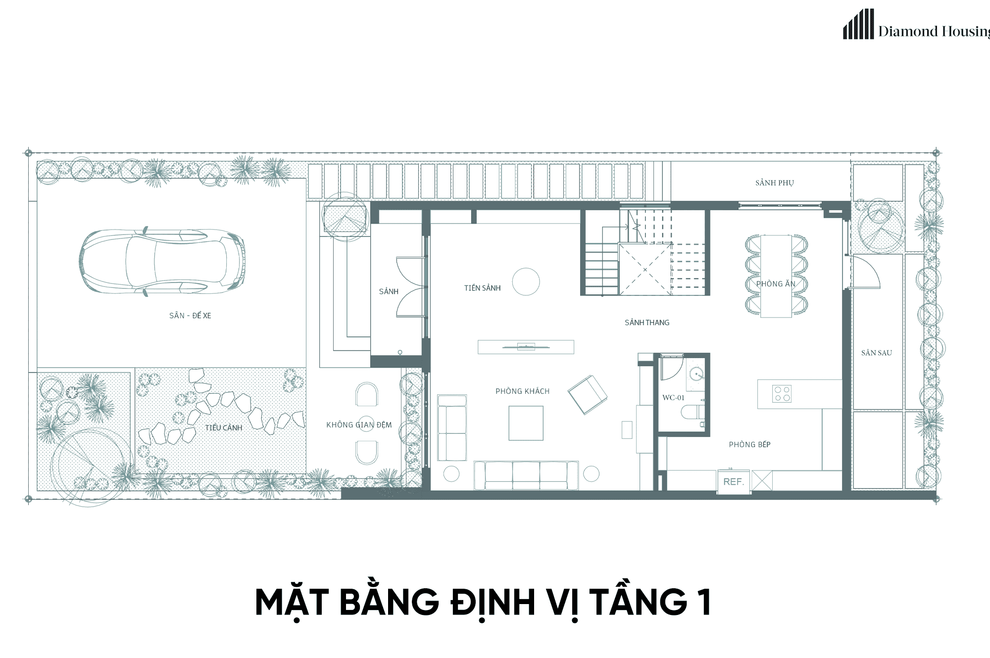 Q.H House có mặt bằng khá tiện lợi cho một công trình nhà phố hiện đại. Với ô đất phân lô, mặt bằng sở hữu 2 mặt tiền đẹp, Diamond Housing tập trung hoàn toàn và sắp xếp các phòng chức năng thật thông minh, sang trọng nhằm tạo ra công trình phù hợp nhất với Mr Sơn.