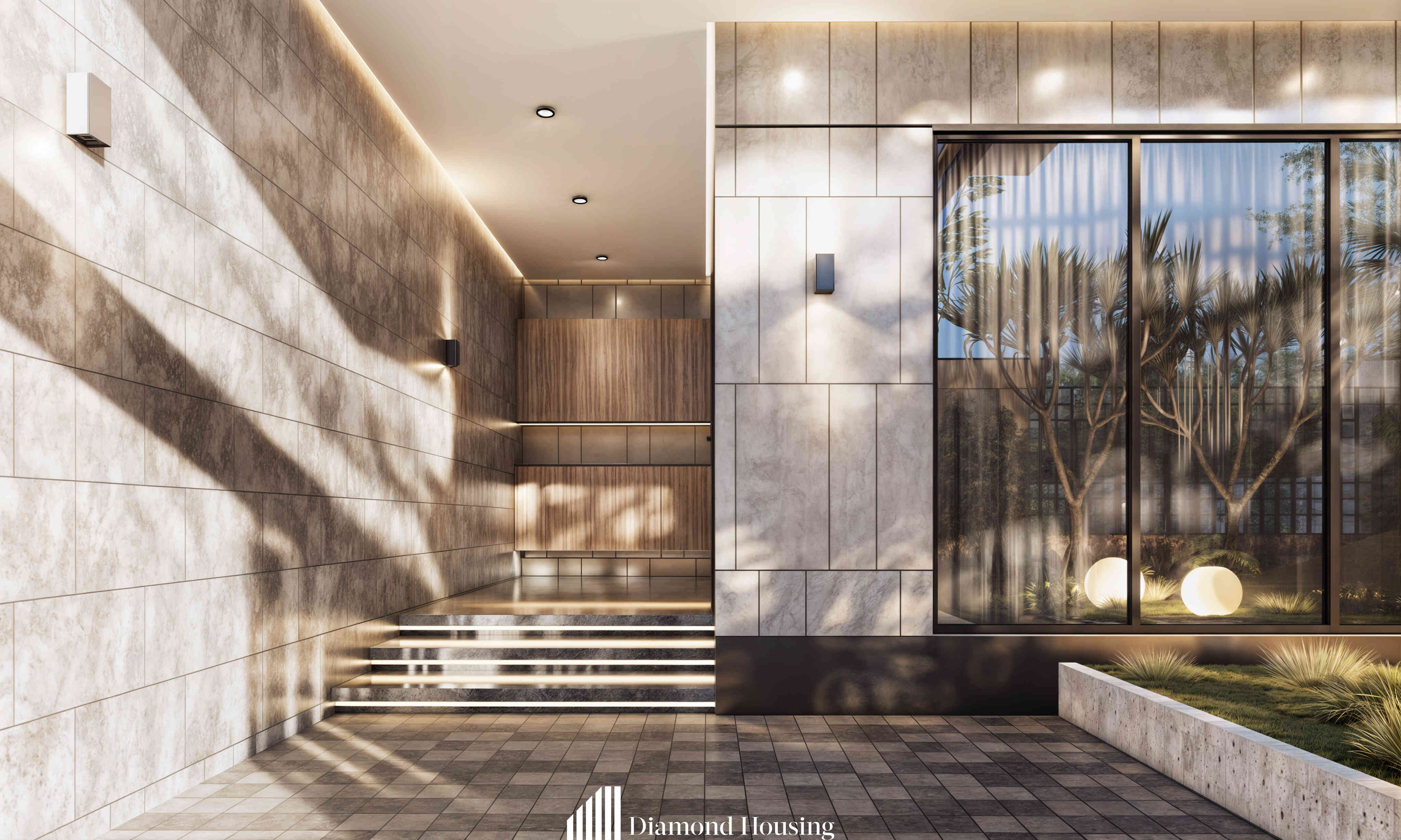 Cửa ra vào được thiết kế lùi vào trong, tạo ra một khoảng hành lang nhỏ cực kì sang trọng và hiện đại.