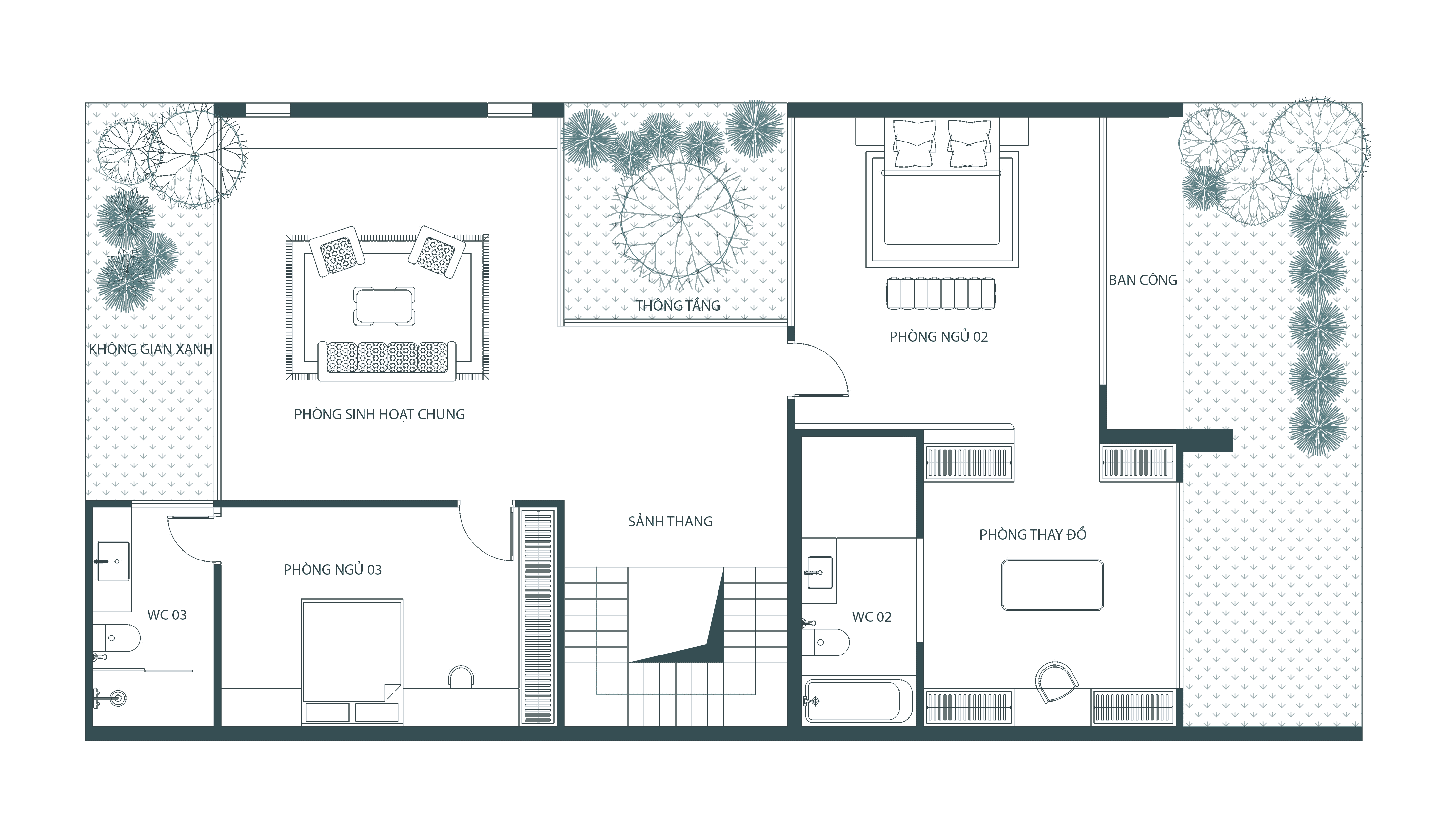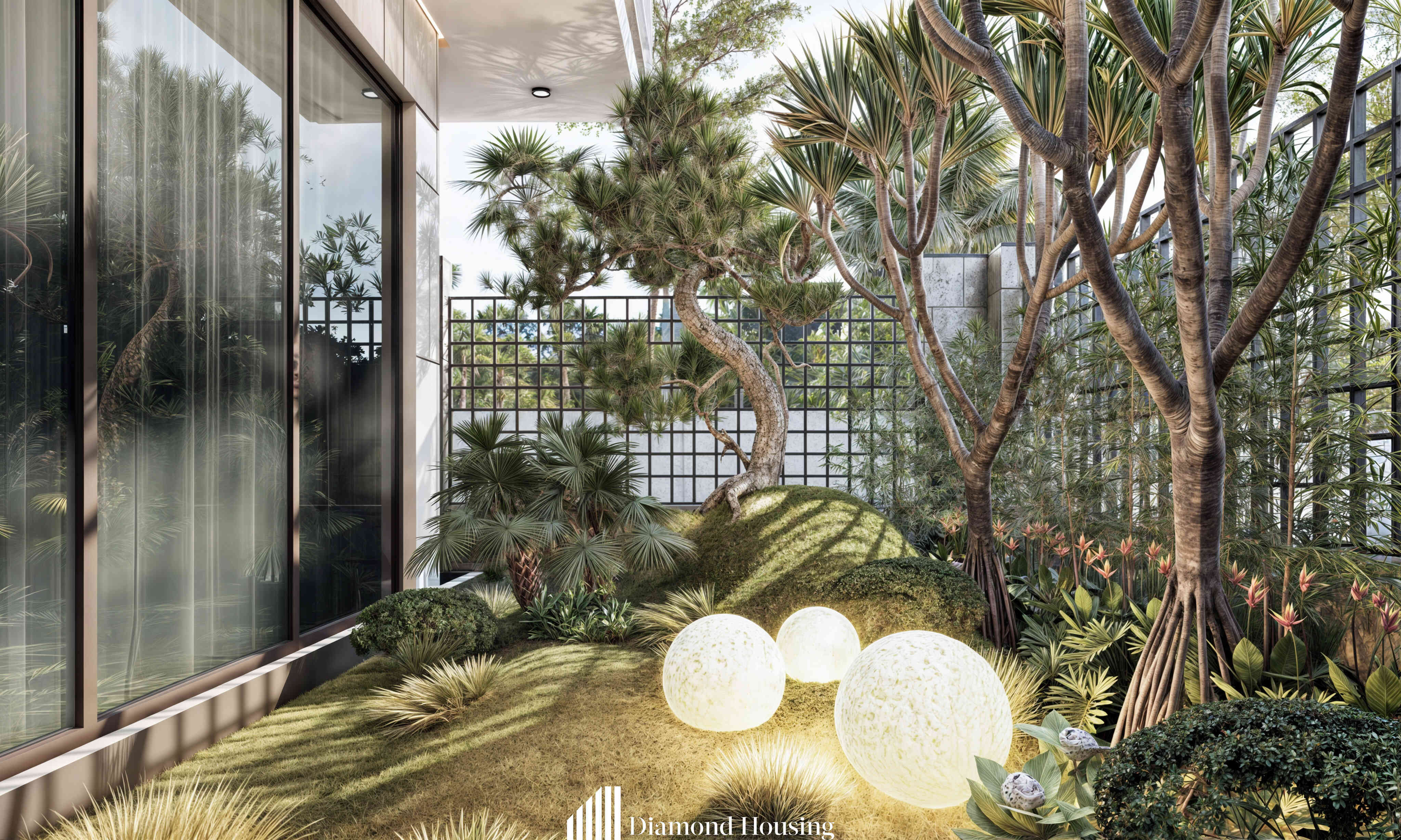 Các khu vực cây xanh này được tính toán kỹ lưỡng để toát lên vẻ sang trọng, phù hợp với thiết kế của toàn bộ villa nhưng vẫn đảm bảo sự hòa hợp với thiên nhiên.