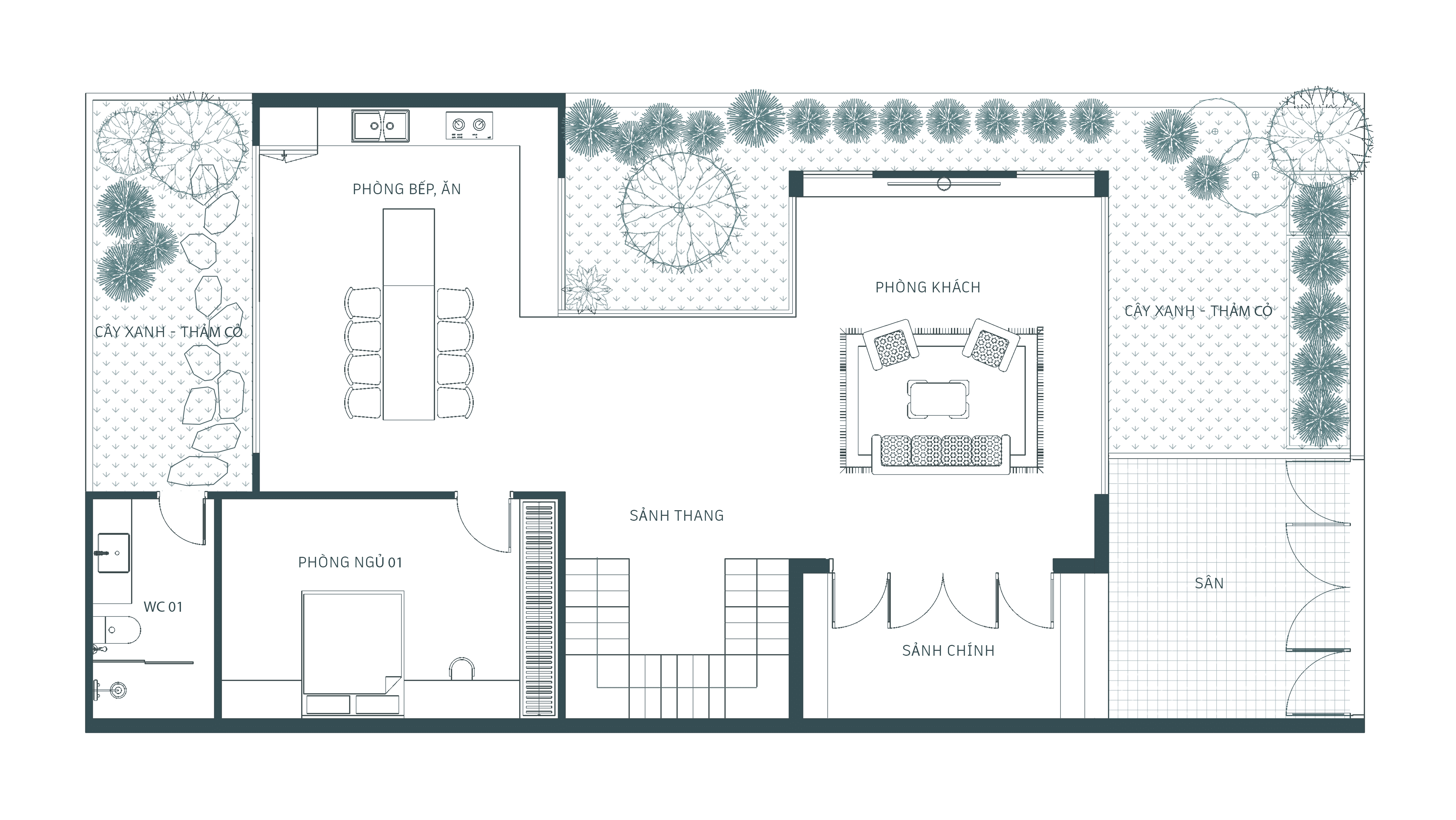 Các khu vực cây xanh được bố trí khắp căn nhà