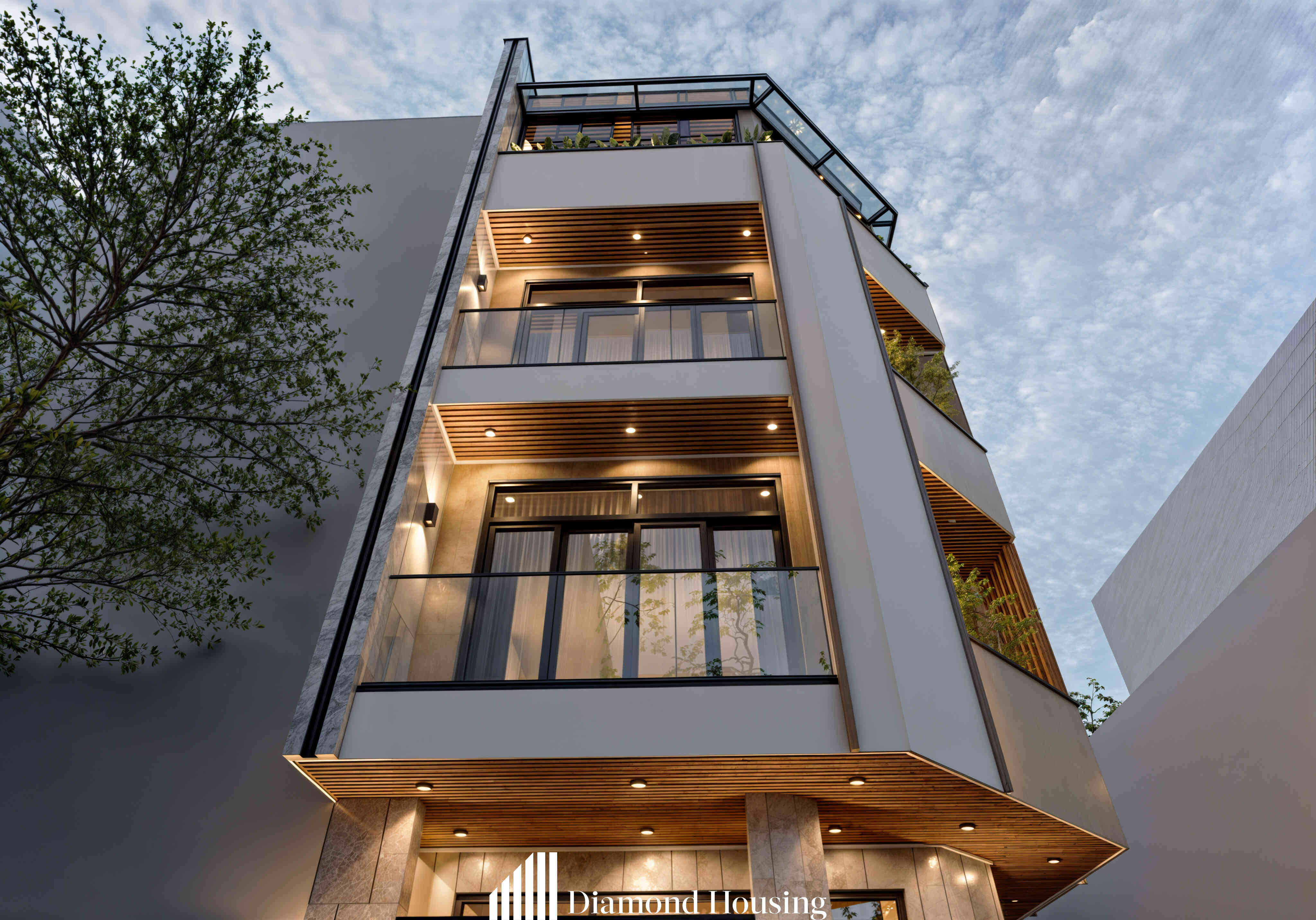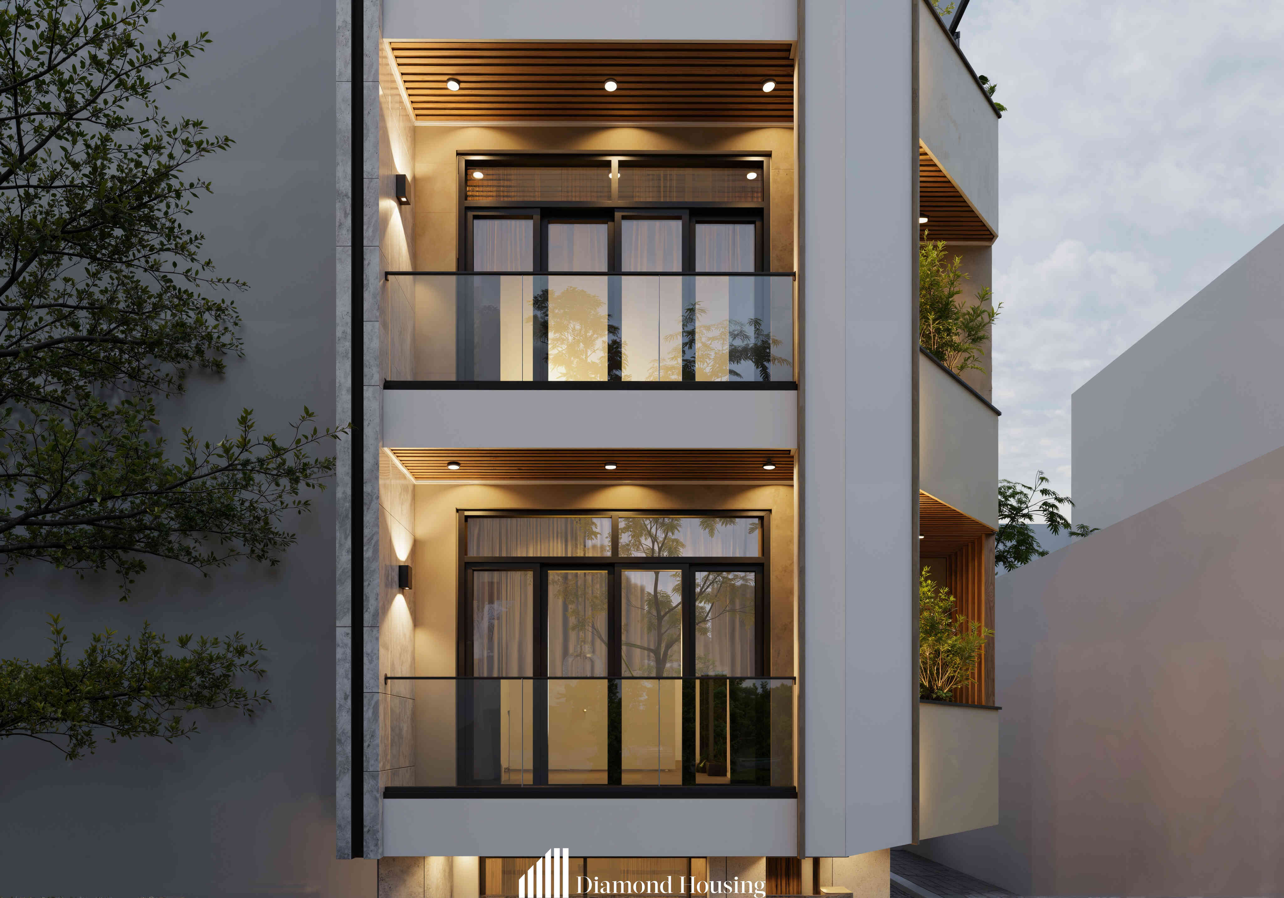 Với nhu cầu liên kết và hòa hợp với thiên nhiên của gia chủ, Diamond Housing đã bố trí nhiều cây xanh đặt trong nhiều khoảng ban công xen kẽ.