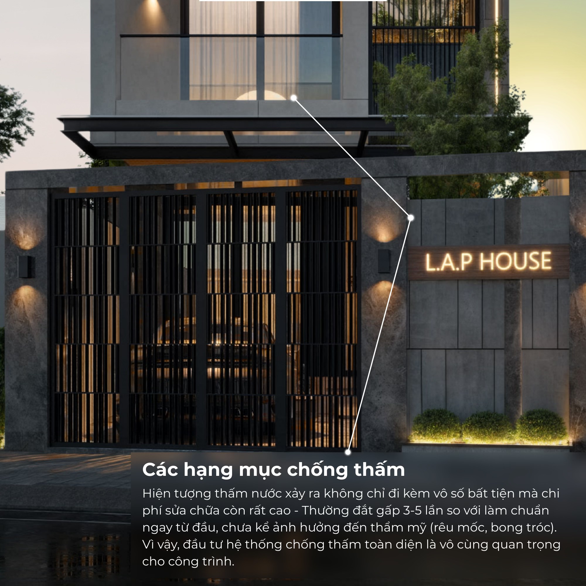 Chống thấm là hạng mục "sống còn" đối với độ bền và thẩm mỹ của công trình. Nhiều gia chủ thường lơ là khâu này, nhưng thực tế, hiện tượng thấm nước không chỉ gây bất tiện mà chi phí sửa chữa còn rất cao – thường đắt gấp 3-5 lần so với việc làm chuẩn ngay từ đầu.