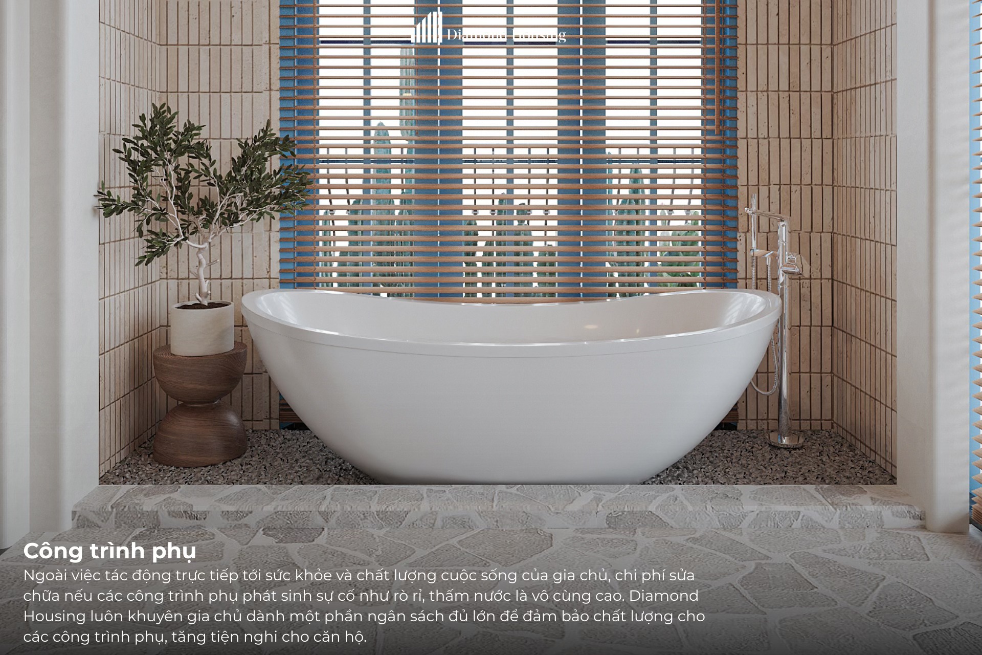 Các khu vực như nhà vệ sinh, phòng tắm (công trình phụ) tác động trực tiếp đến sức khỏe và chất lượng cuộc sống hàng ngày. Diamond Housing luôn khuyên gia chủ dành một phần ngân sách đủ lớn cho hạng mục này vì: