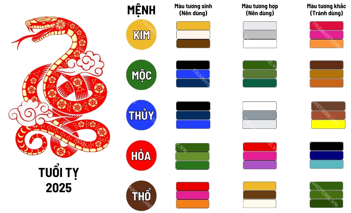 Xét theo đó, trong năm 2025, tuổi Ất Tỵ mệnh Hỏa sẽ hợp với những màu sắc như: đỏ, cam, hồng và tím. Khi xem tuổi làm nhà 2025, Mộc sinh Hỏa, màu xanh lục được xem là phù hợp với những người tuổi này theo học thuyết phong thủy.