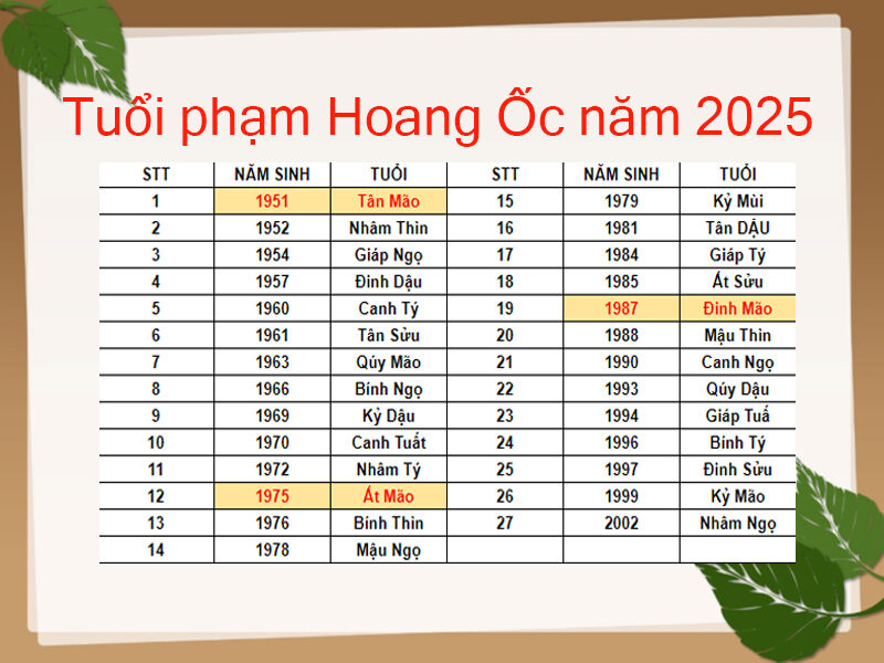 Danh sách các tuổi phạm Hoang Ốc 2025, không nên làm tuổi xây nhà 2025: