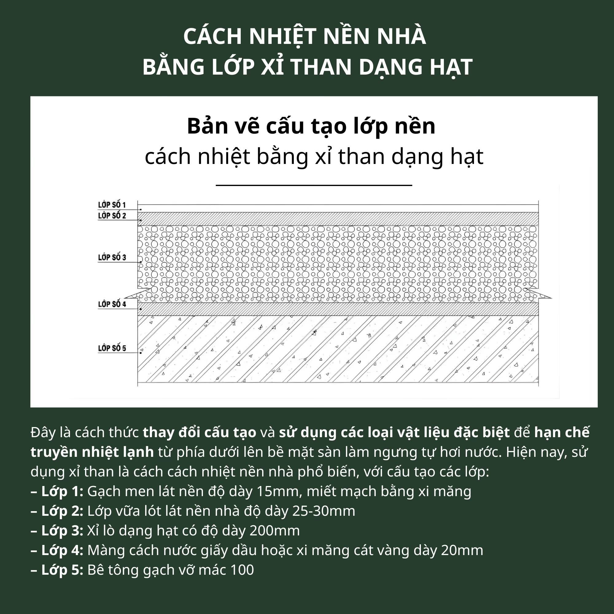 Đây là cách cách nhiệt nền nhà rất phổ biến, tận dụng khả năng cách nhiệt tốt và giá thành rẻ của xỉ than.