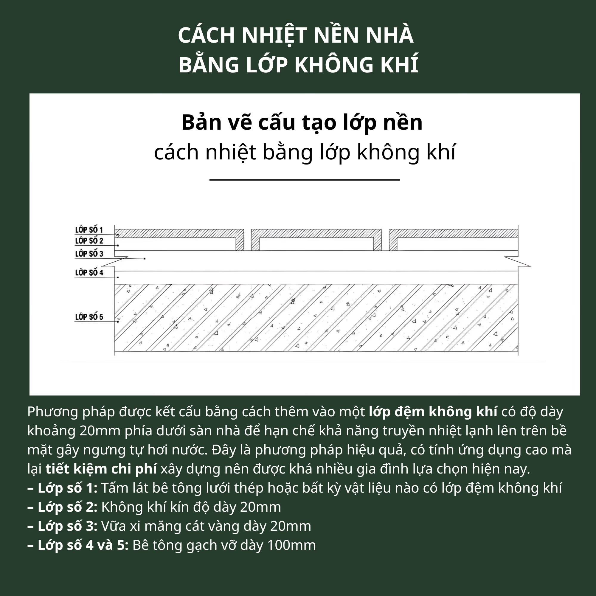 - Lớp 2: Lớp không khí kín (dày 20mm).