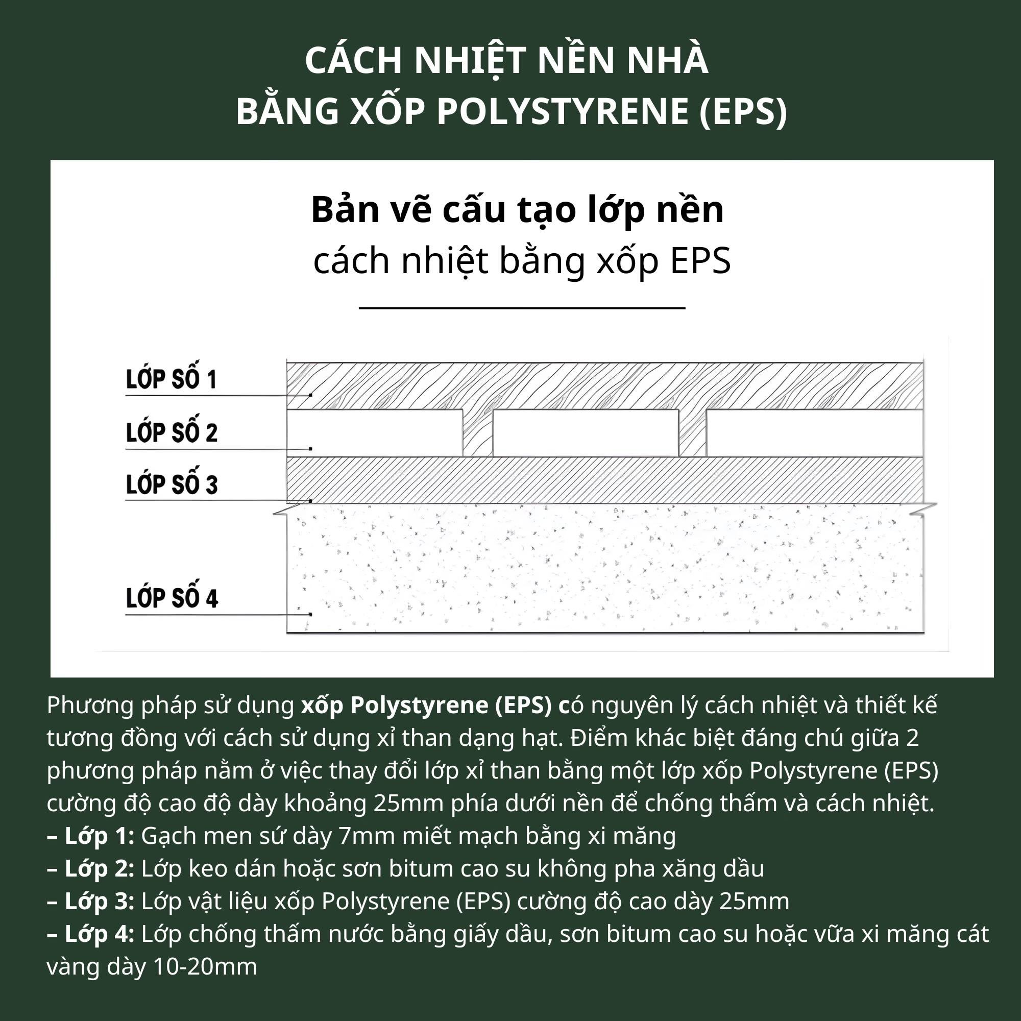 - Lớp 3: Xốp Polystyrene (EPS) cường độ cao (dày 25mm).